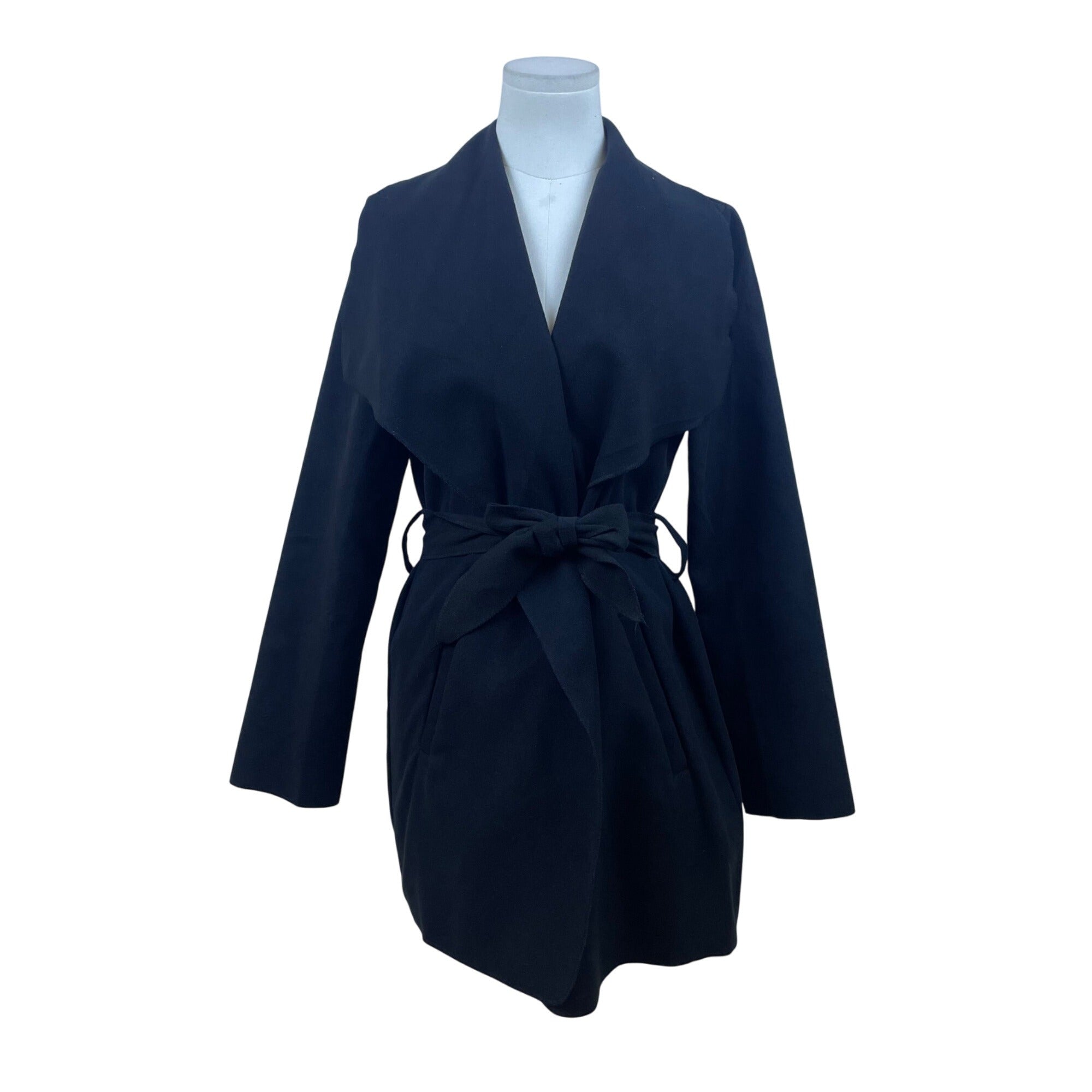 Ambiance Womens Black Polyester Belted Open-Front Coat Size M