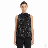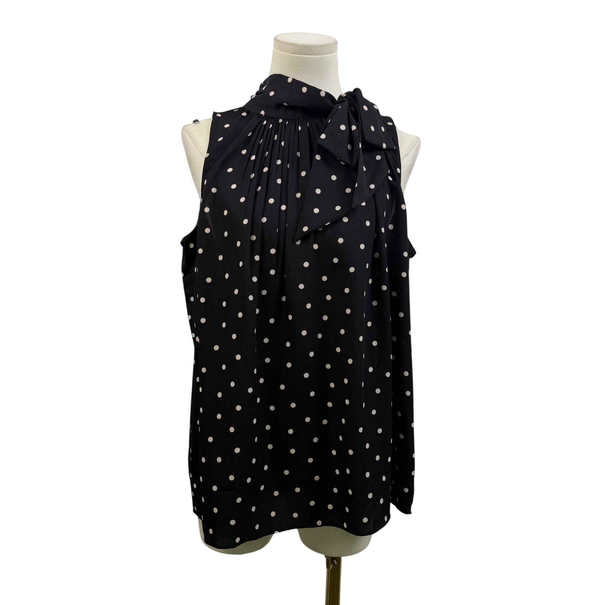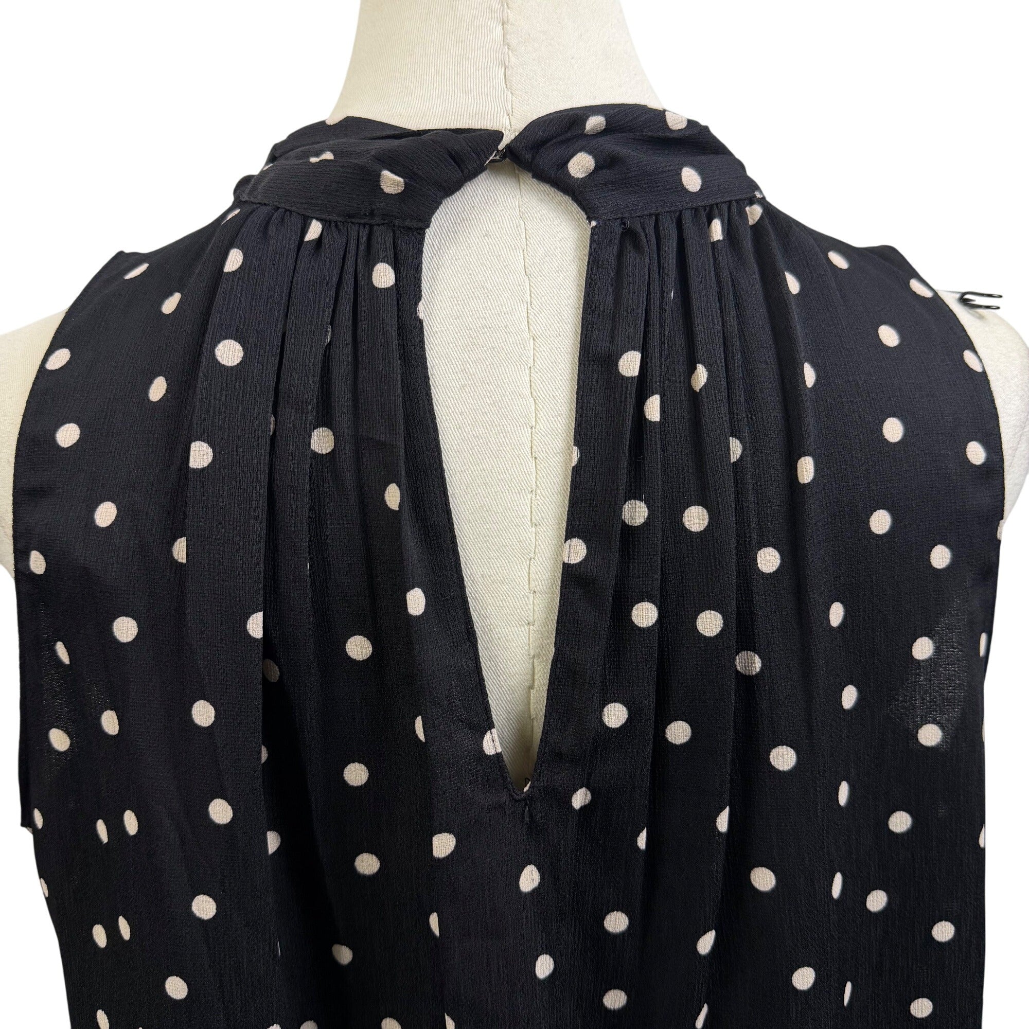 Ann Taylor Women’s Black Polka Dot Blouse Bow Neck Sleeveless Size M - New
