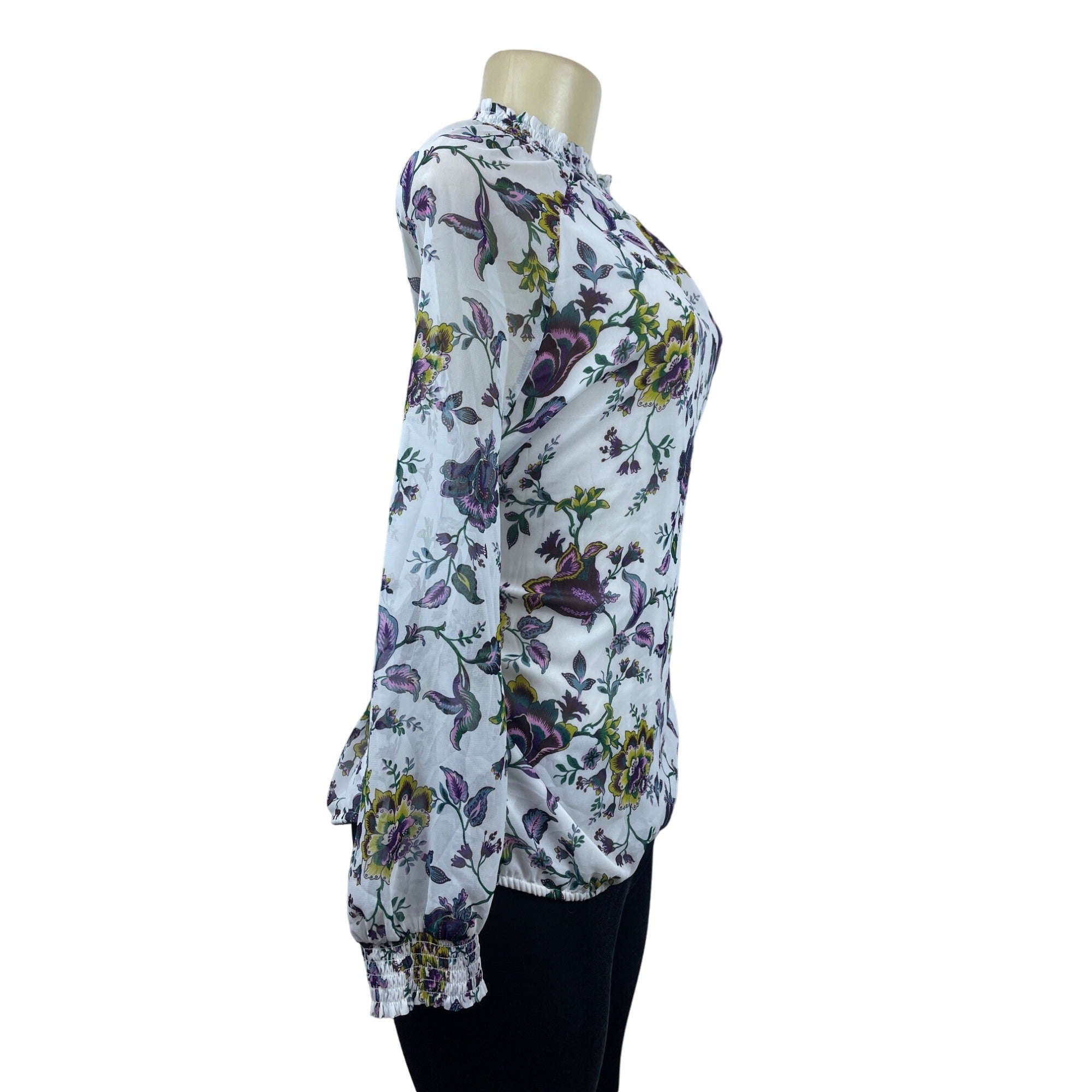 Ann Taylor Women’s White Multicolor Floral Pattern Long Sleeve Shirt Size L