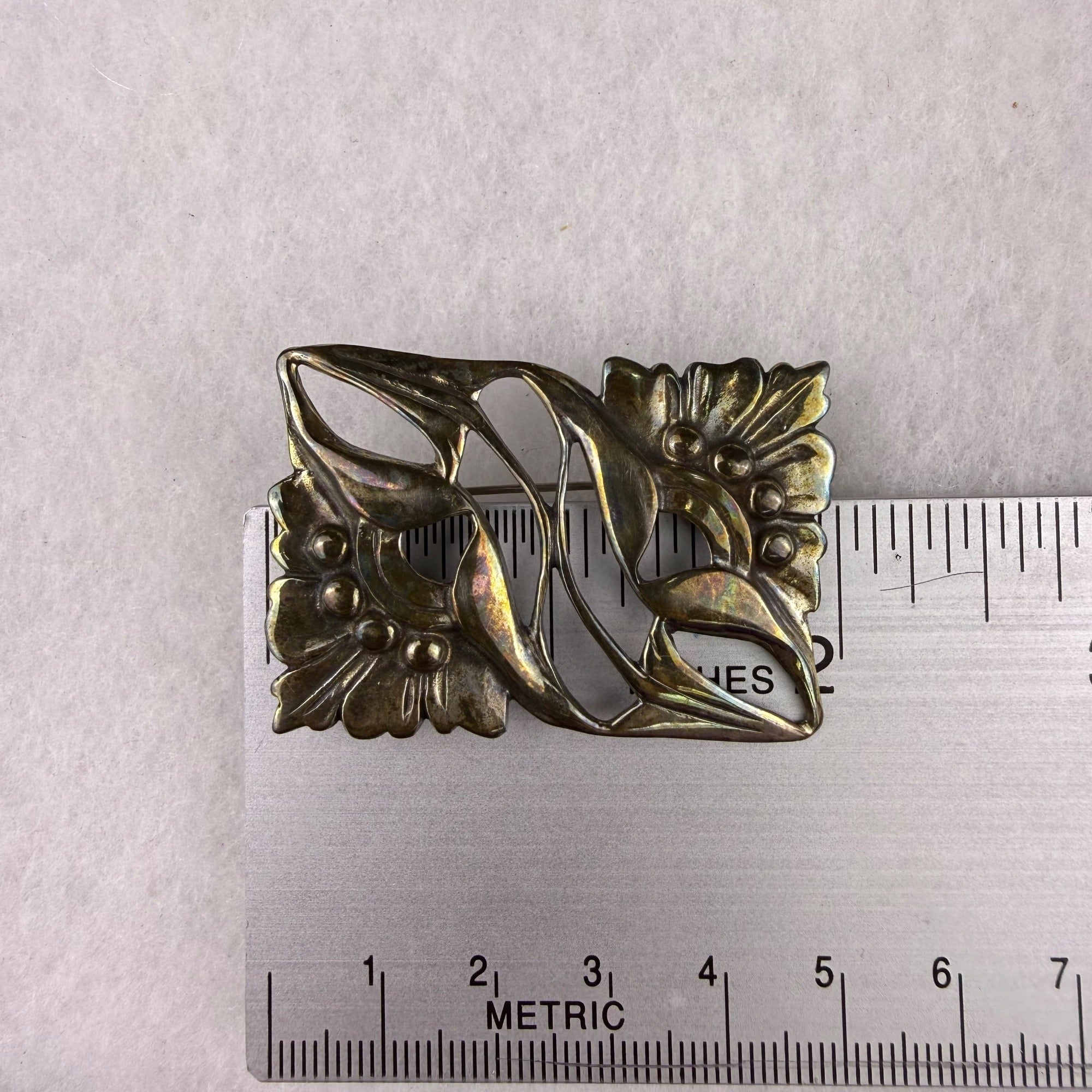 Antique Floral Brass Pin Brooch For Women With Art Nouveau Style & Nature Motif