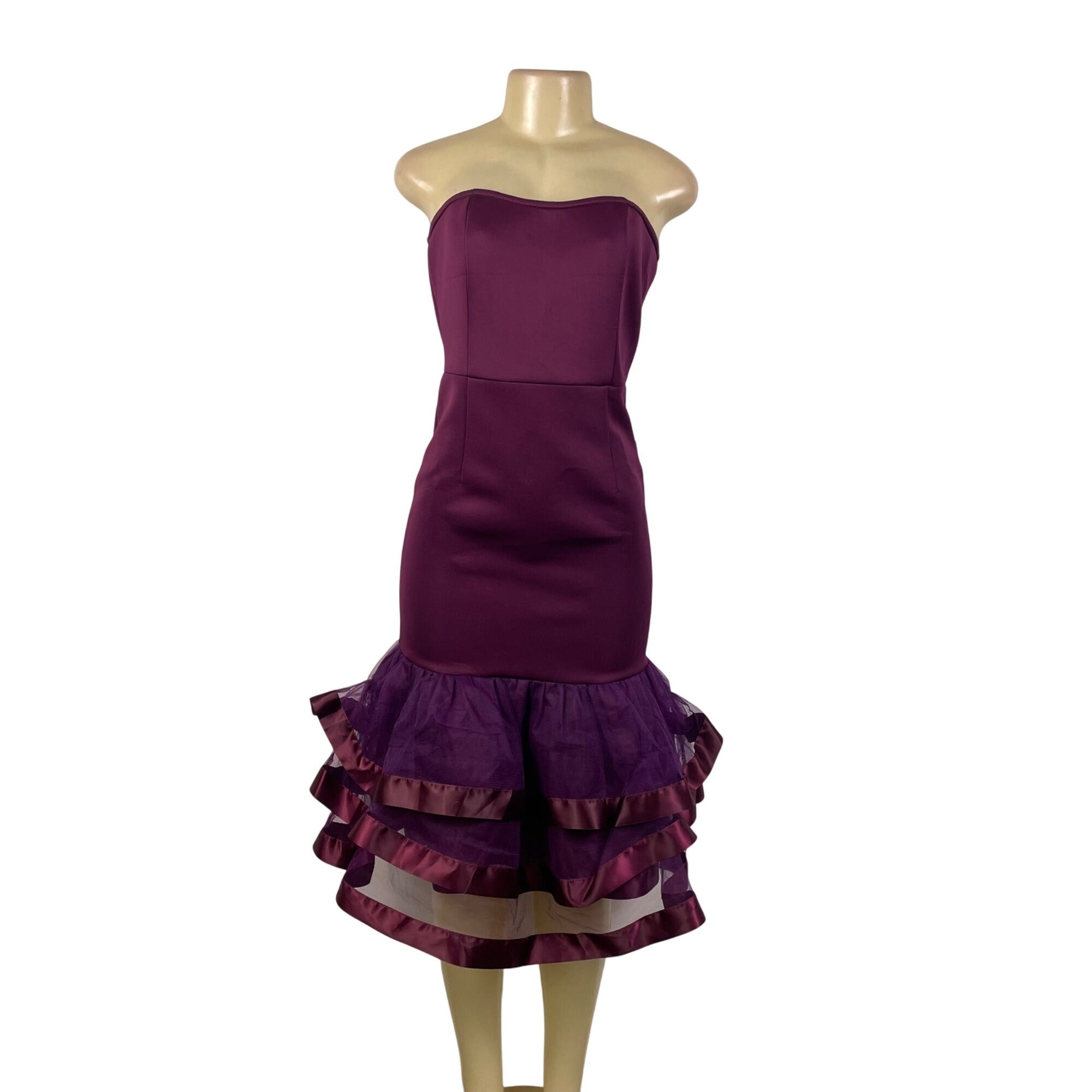 Aomei Women’s Purple Strapless Ruffled Hem Midi Dress Size M - New