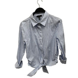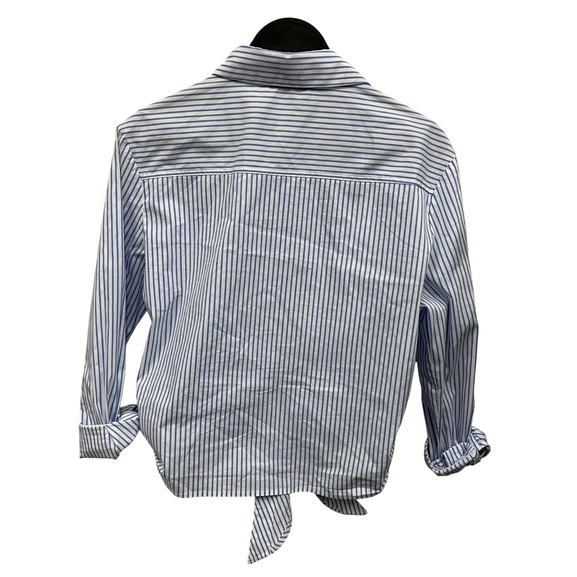 Aqua Womens Blue Striped Cotton Button-Up Shirt With Tie Hem Size S