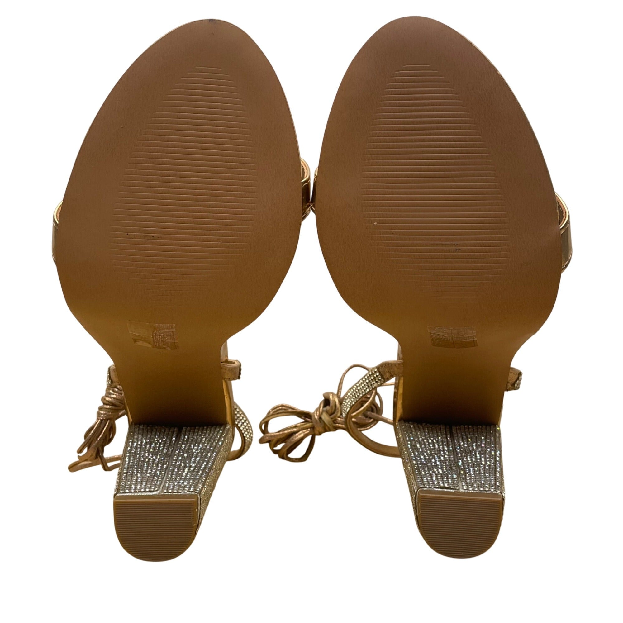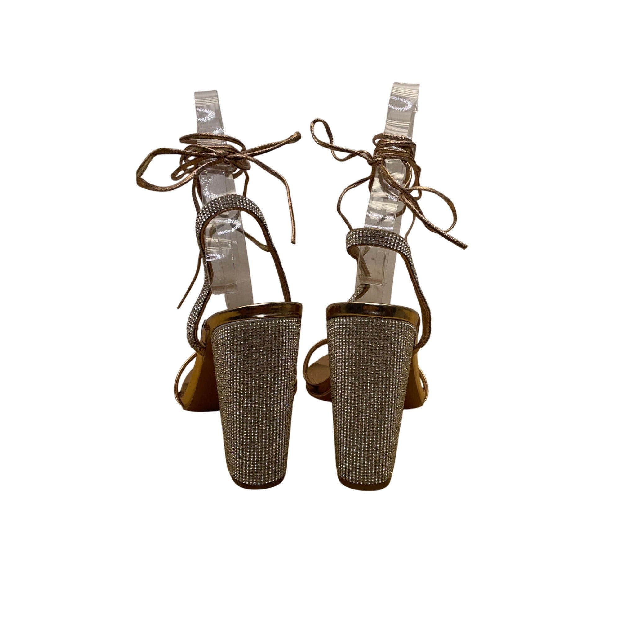 Asos Shoes Women’s Gold Metallic Rhinestone With Wrap Around Lace Up Heels Size 8