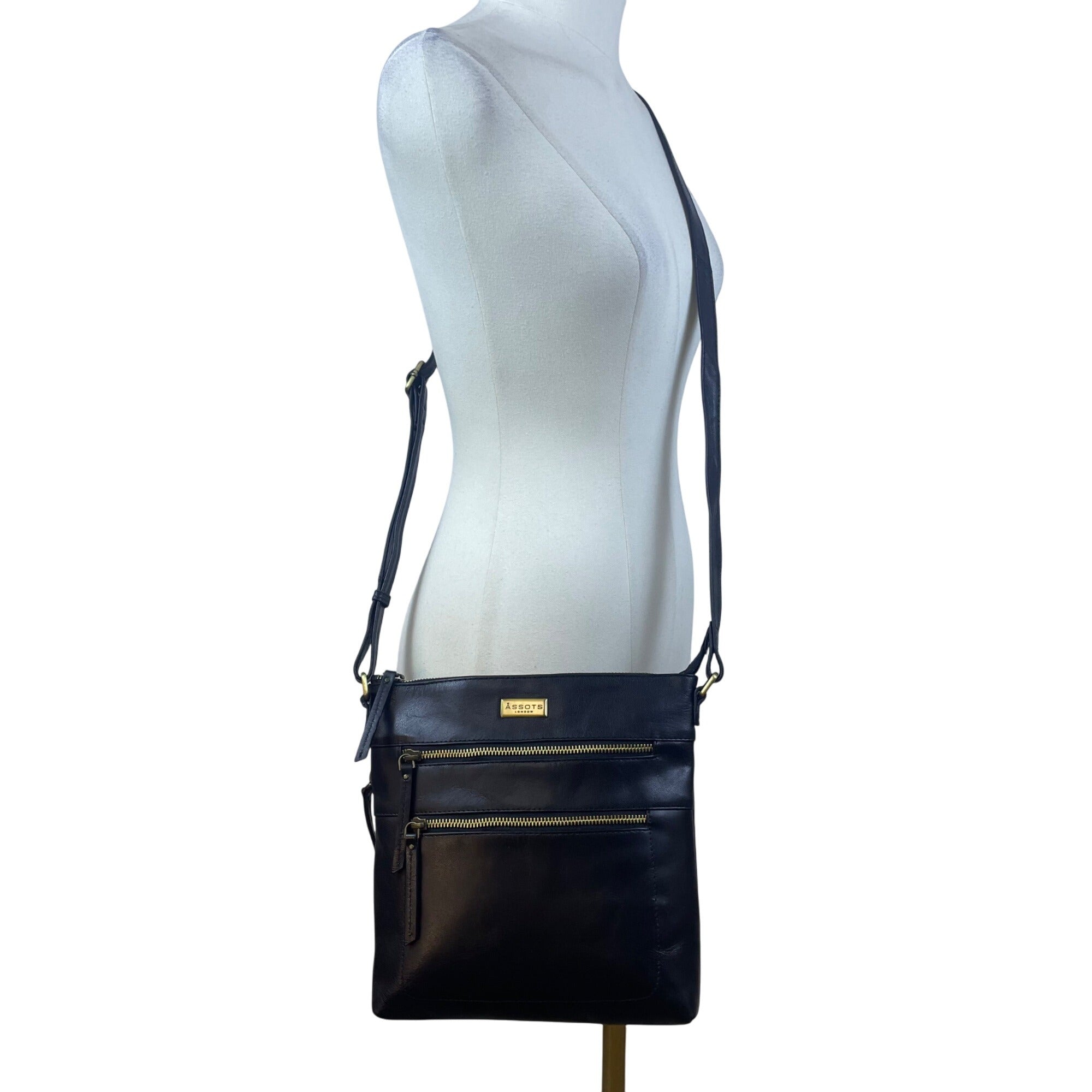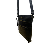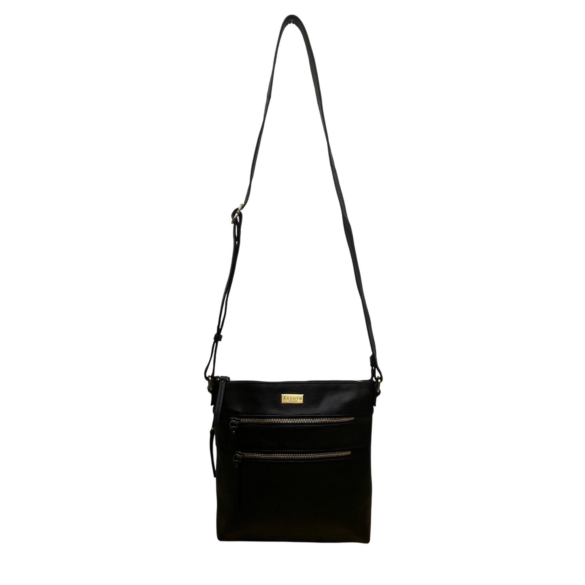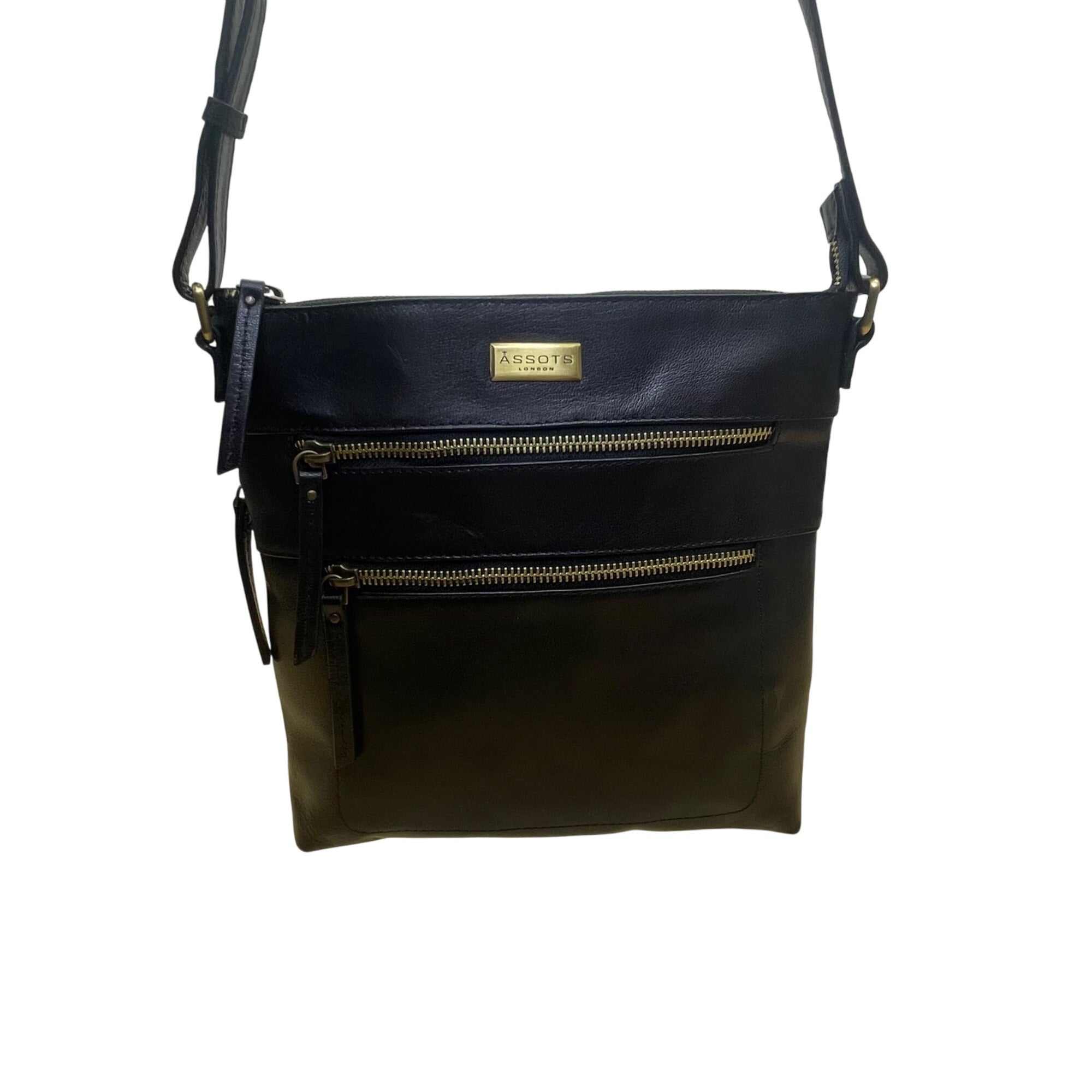 Assots Women’s Black Leather Adjustable Strap Dual-Zip Pockets Crossbody Bag