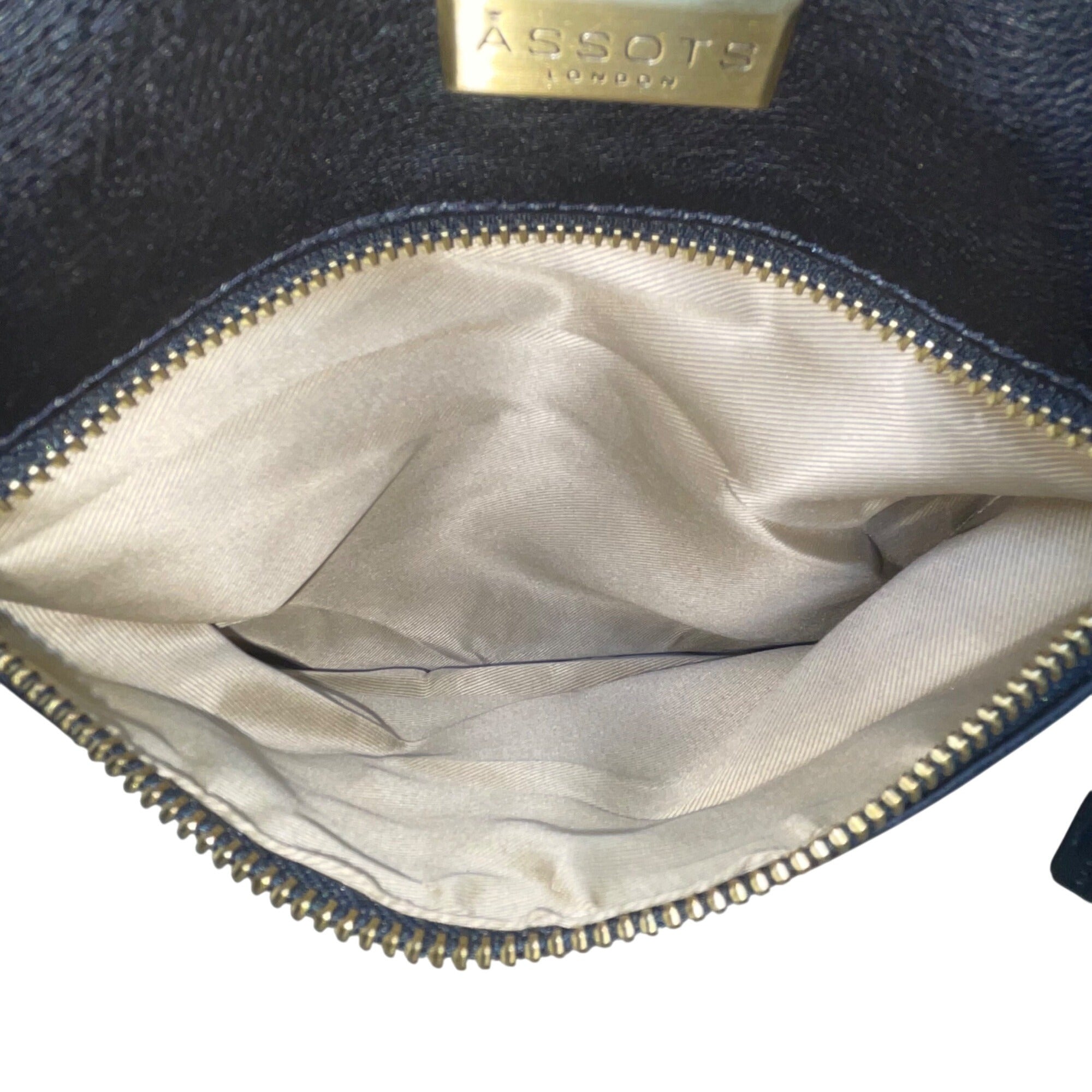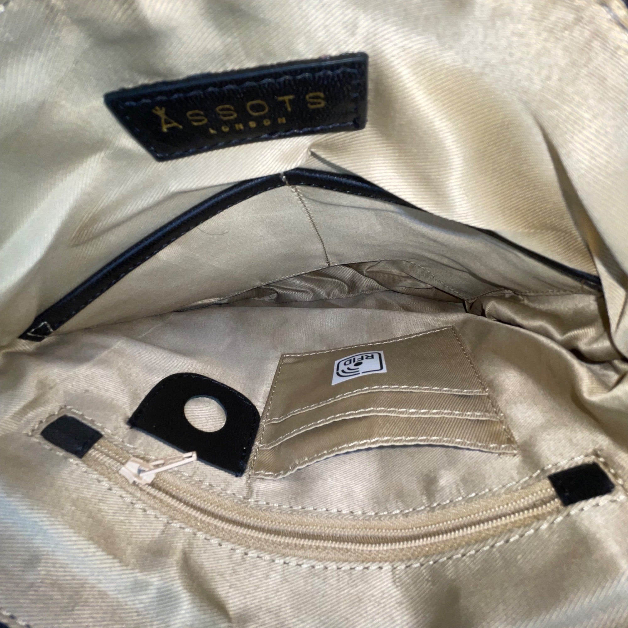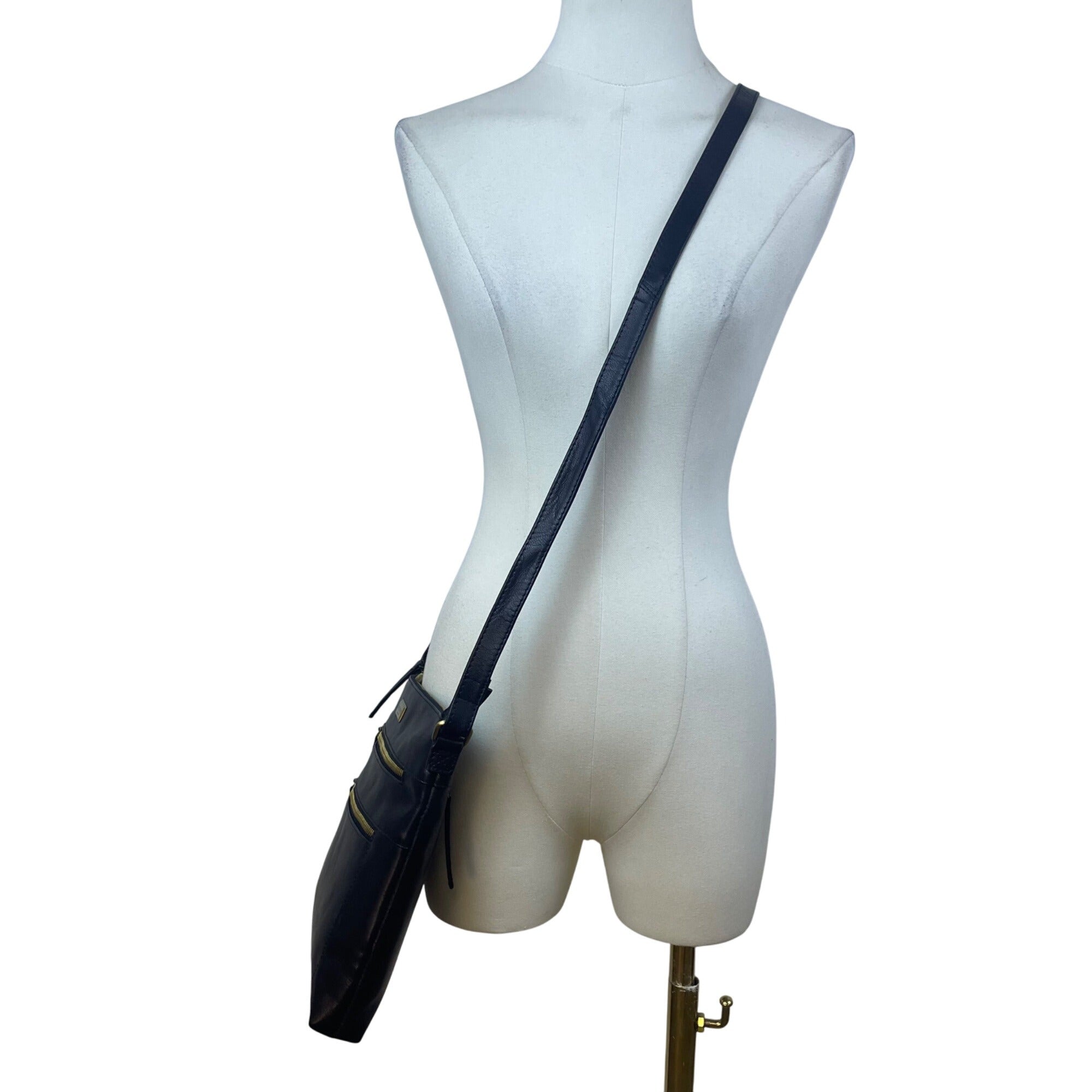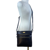Assots Women’s Black Leather Adjustable Strap Dual-Zip Pockets Crossbody Bag