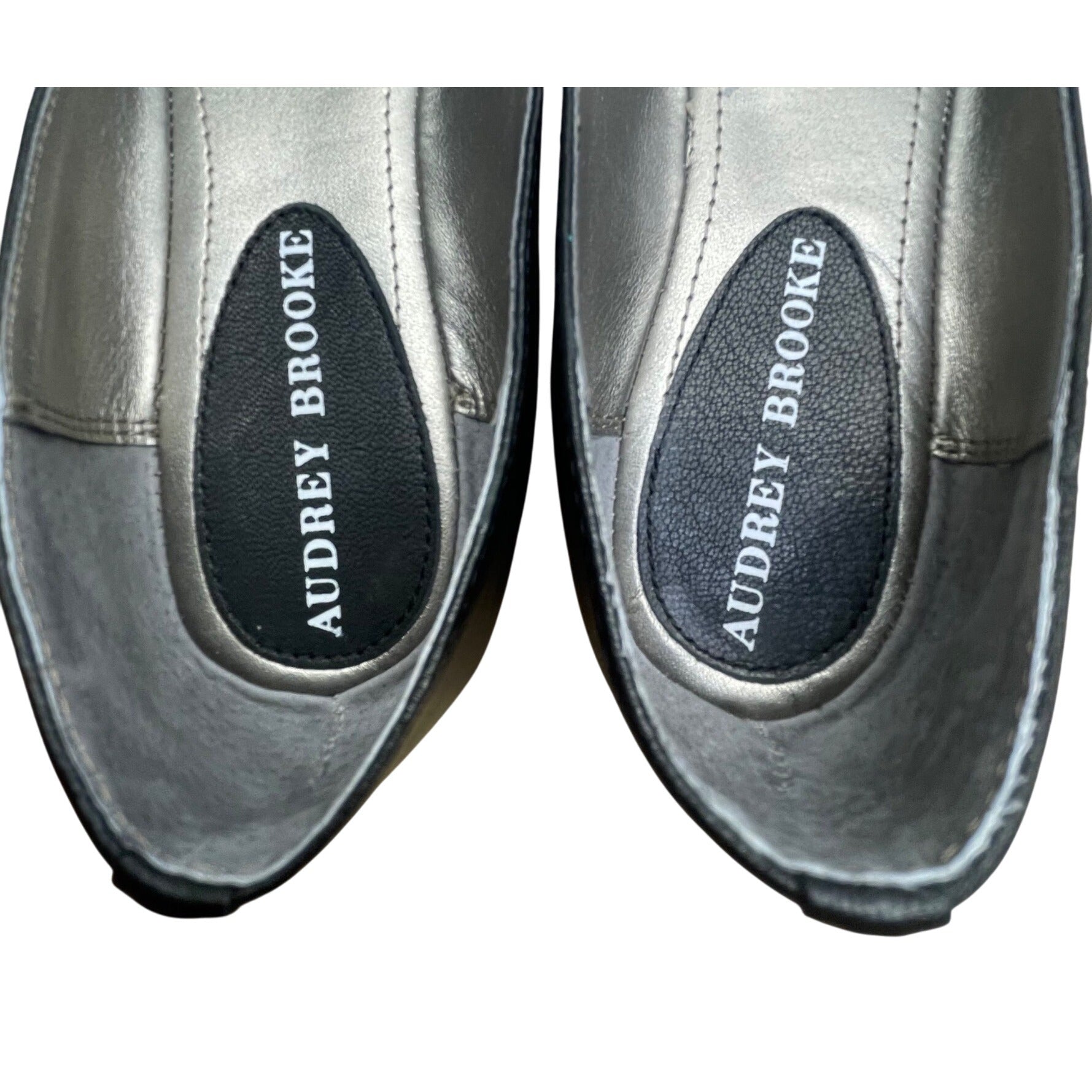 Audrey Brooke Women’s Black Leather Cici Taper Toe Flat Shoes Size 8M