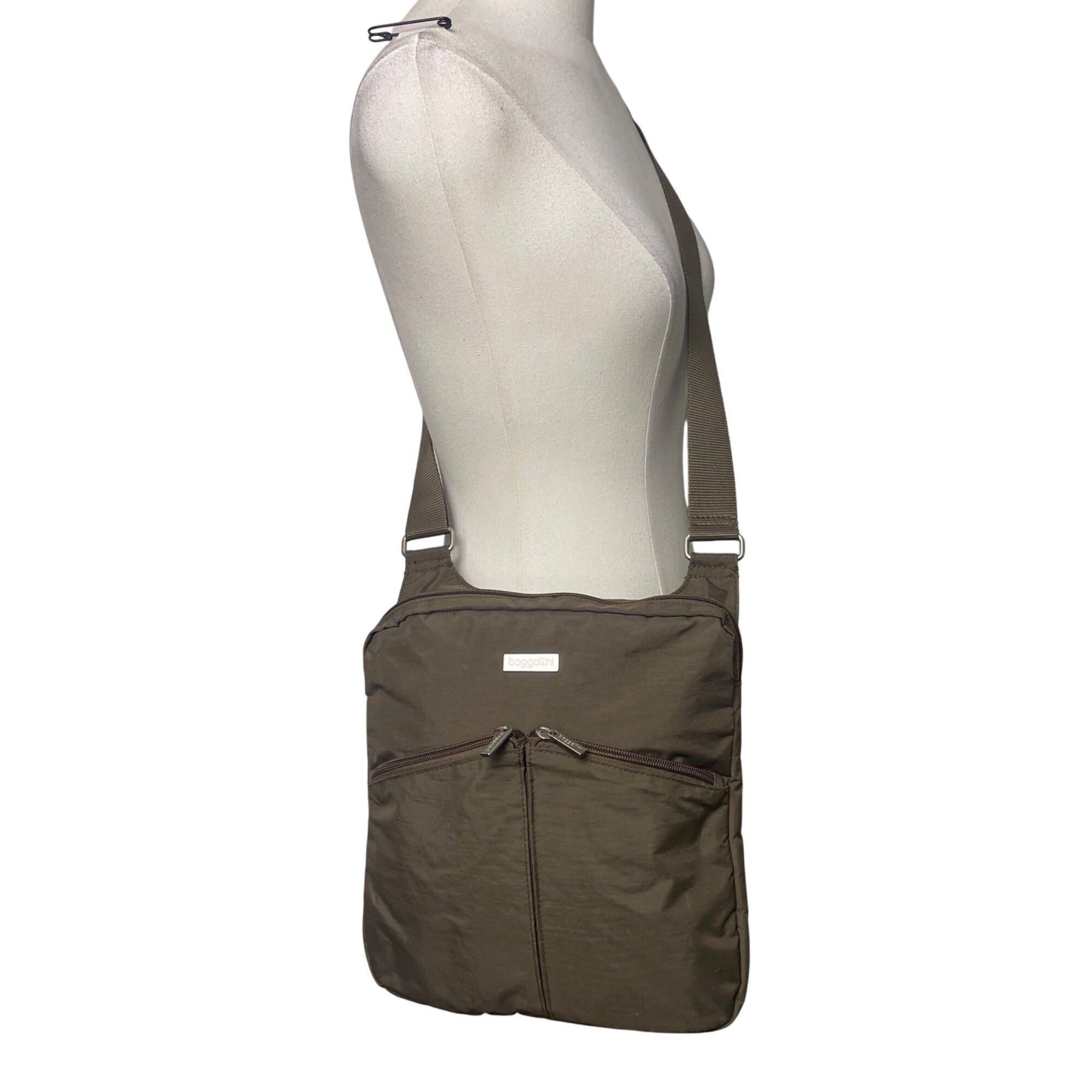 Baggallini Women’s Brown Nylon Adjustable Strap Travel Organizer Crossbody Bag