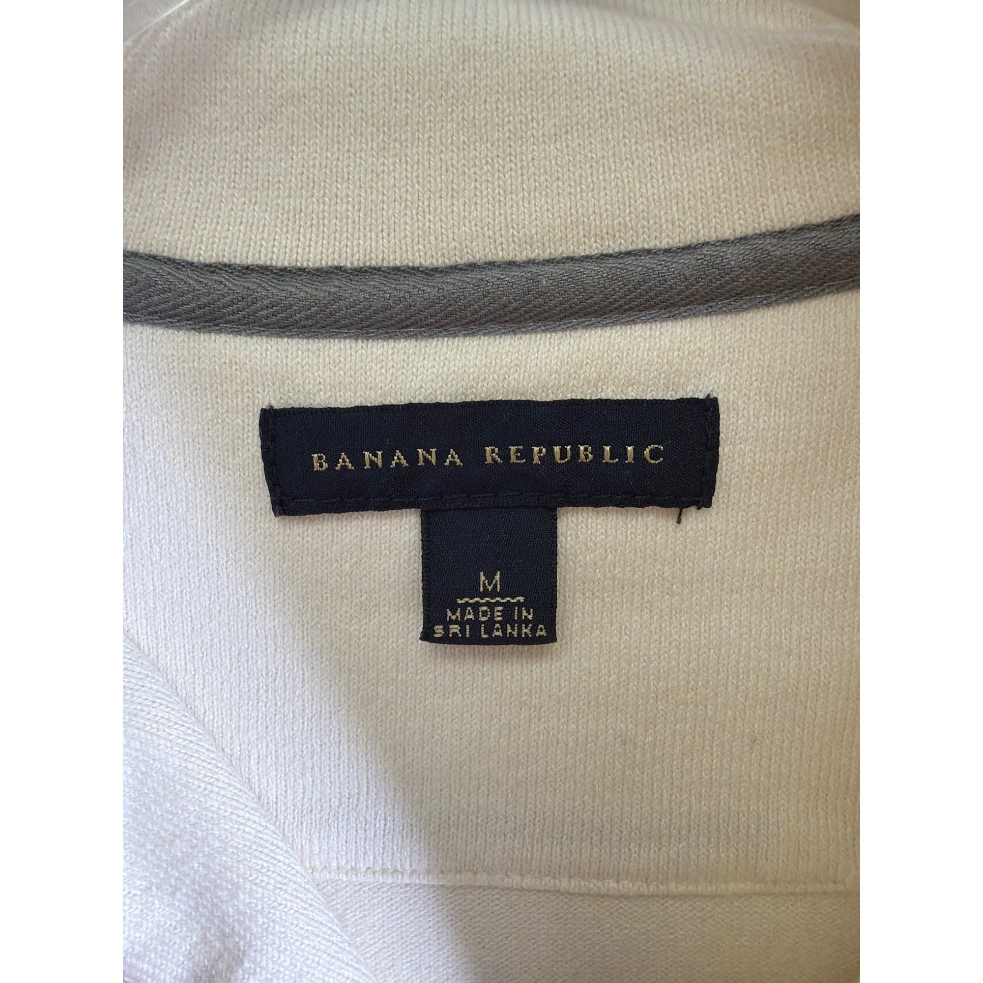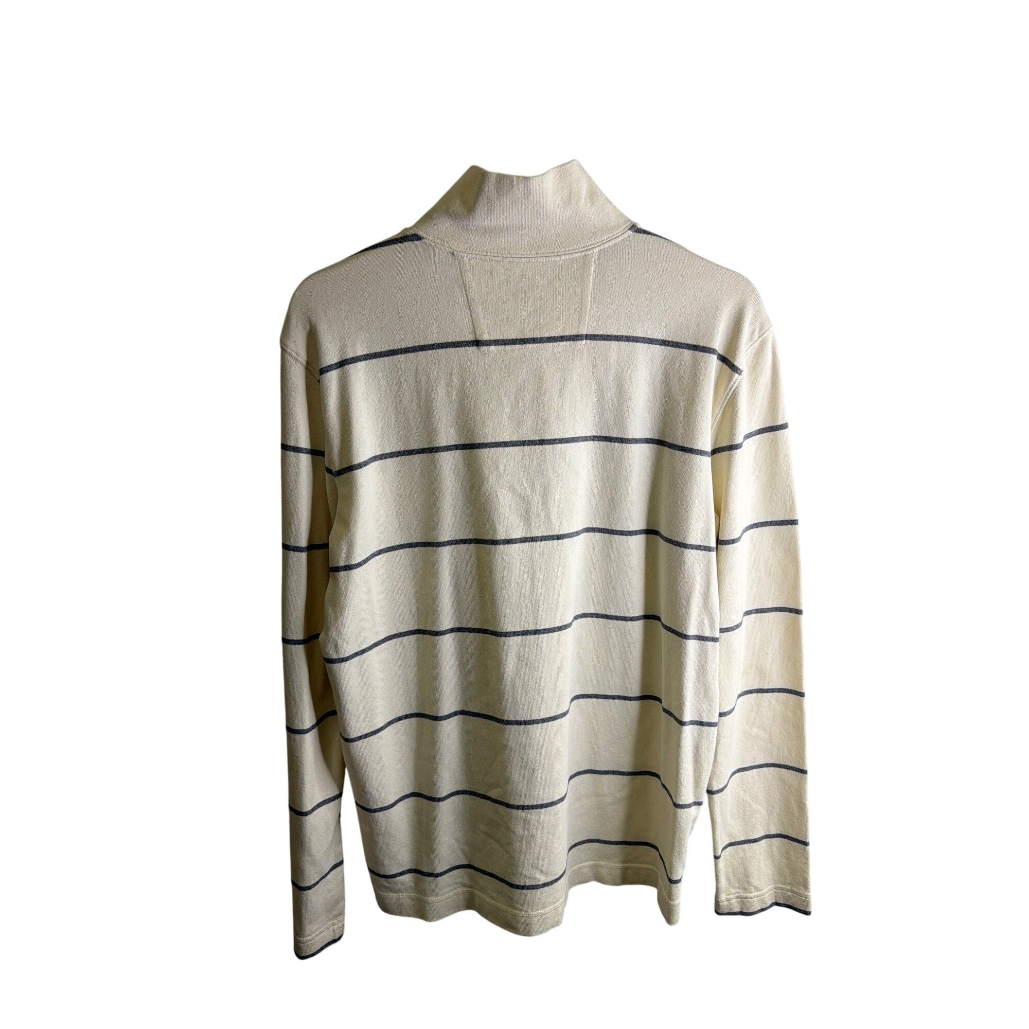 Banana Republic Mens Cream/Gray Cotton Striped Half Zip Long Sleeve Shirt Size M