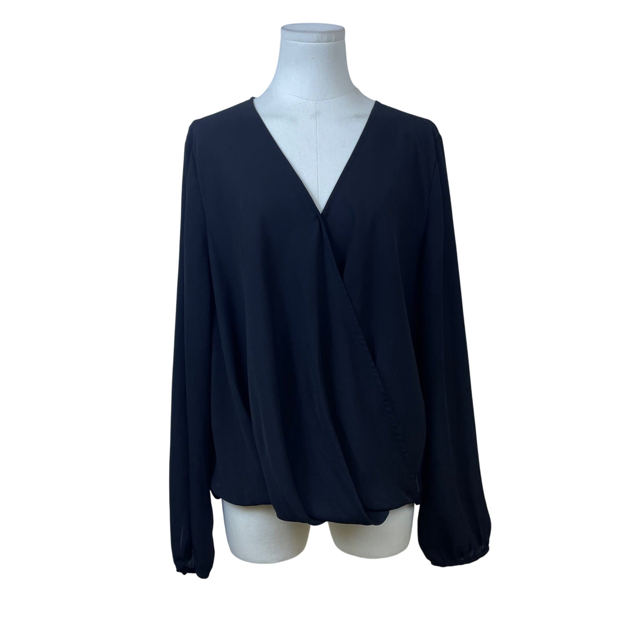 Banana Republic Women's Black Polyester V Neck Wrap Blouse Long Sleeve Size XL
