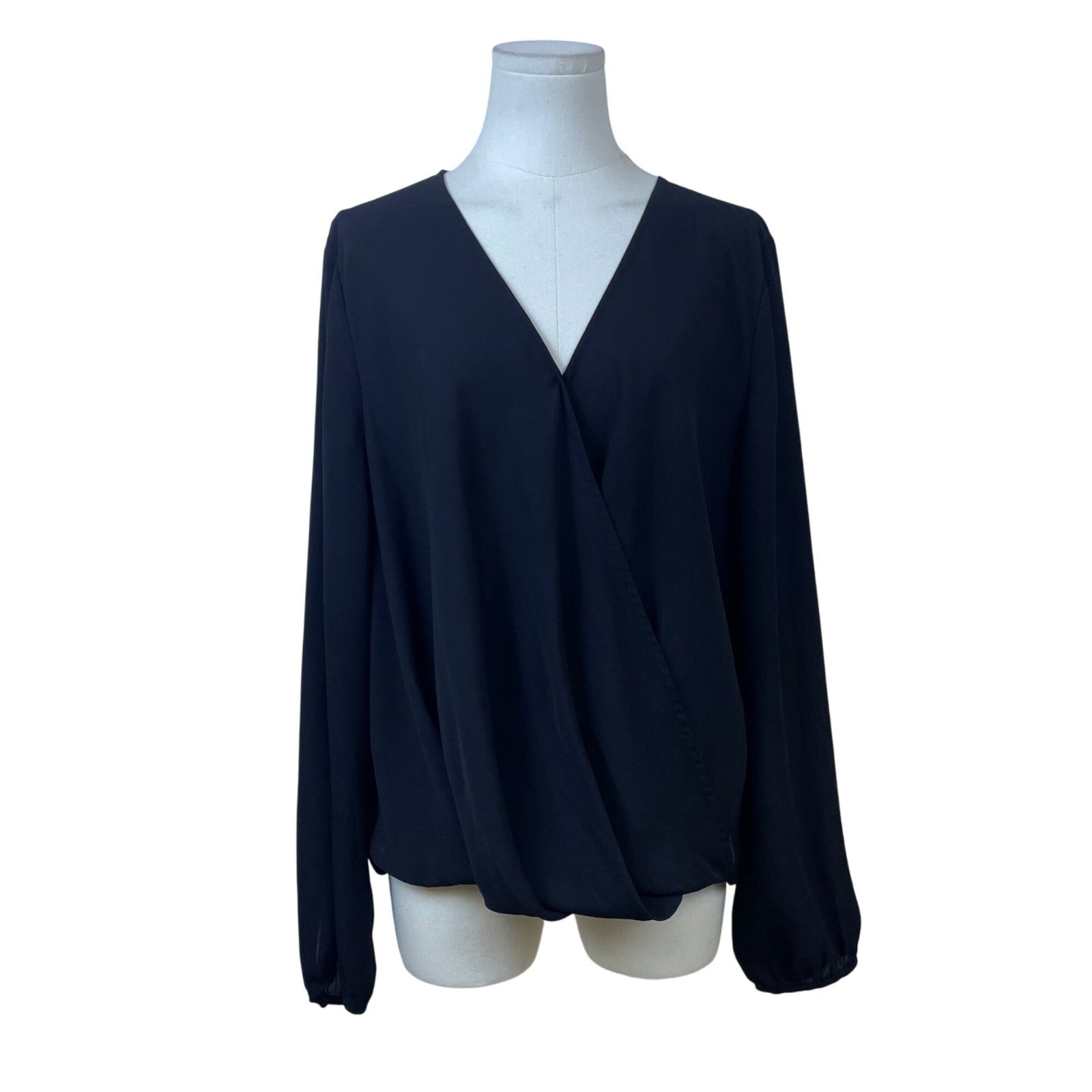 Banana Republic Womens Black Polyester V-Neck Wrap Blouse Long Sleeve Size XL