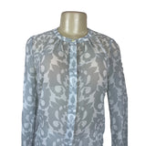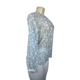 Banana Republic Women's Grey and White Sheer Long Sleeved Blouse Sz XS