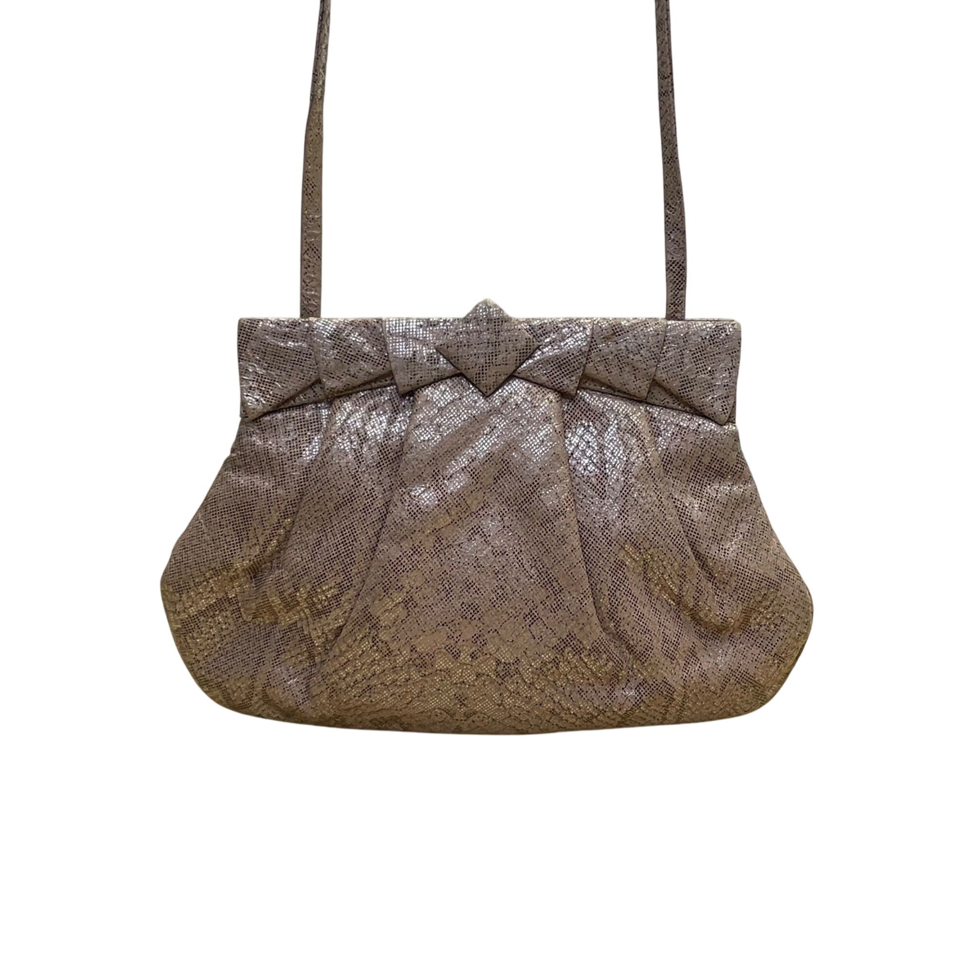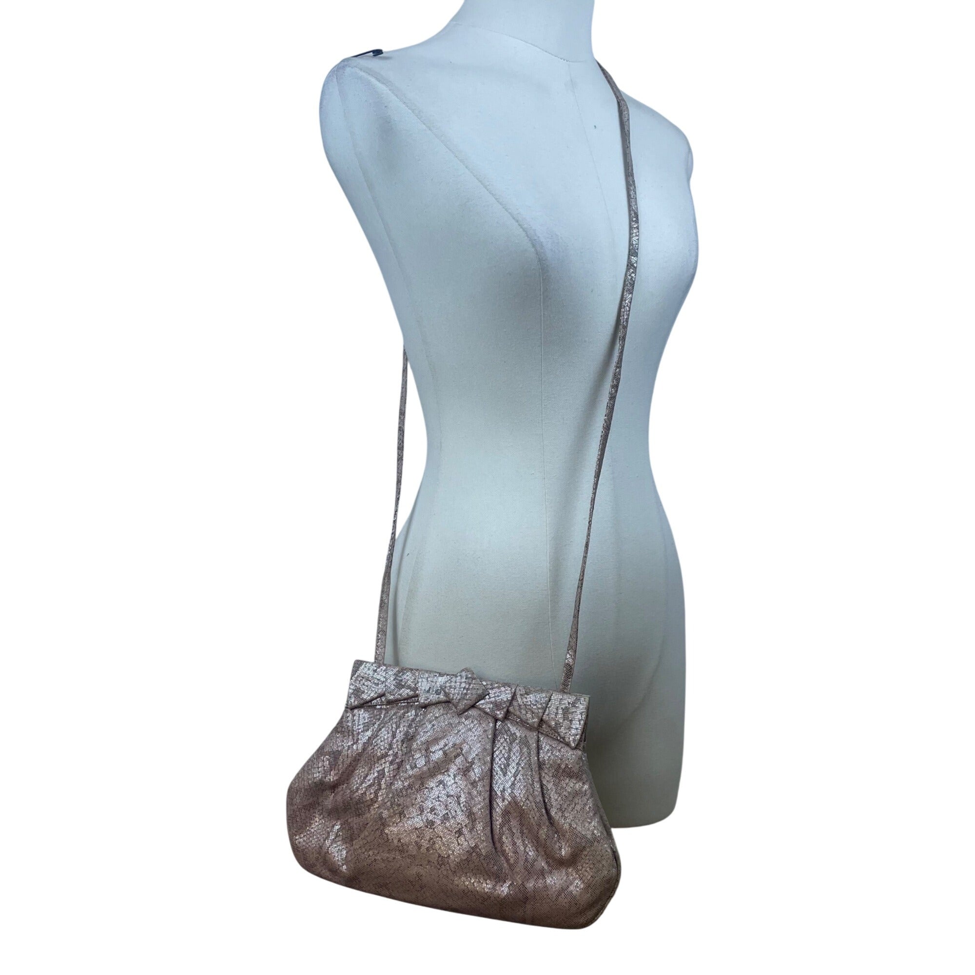 Barbara Bolan Too Womens Rose Gold Faux Leather With Bow Detail Crossbody Bag