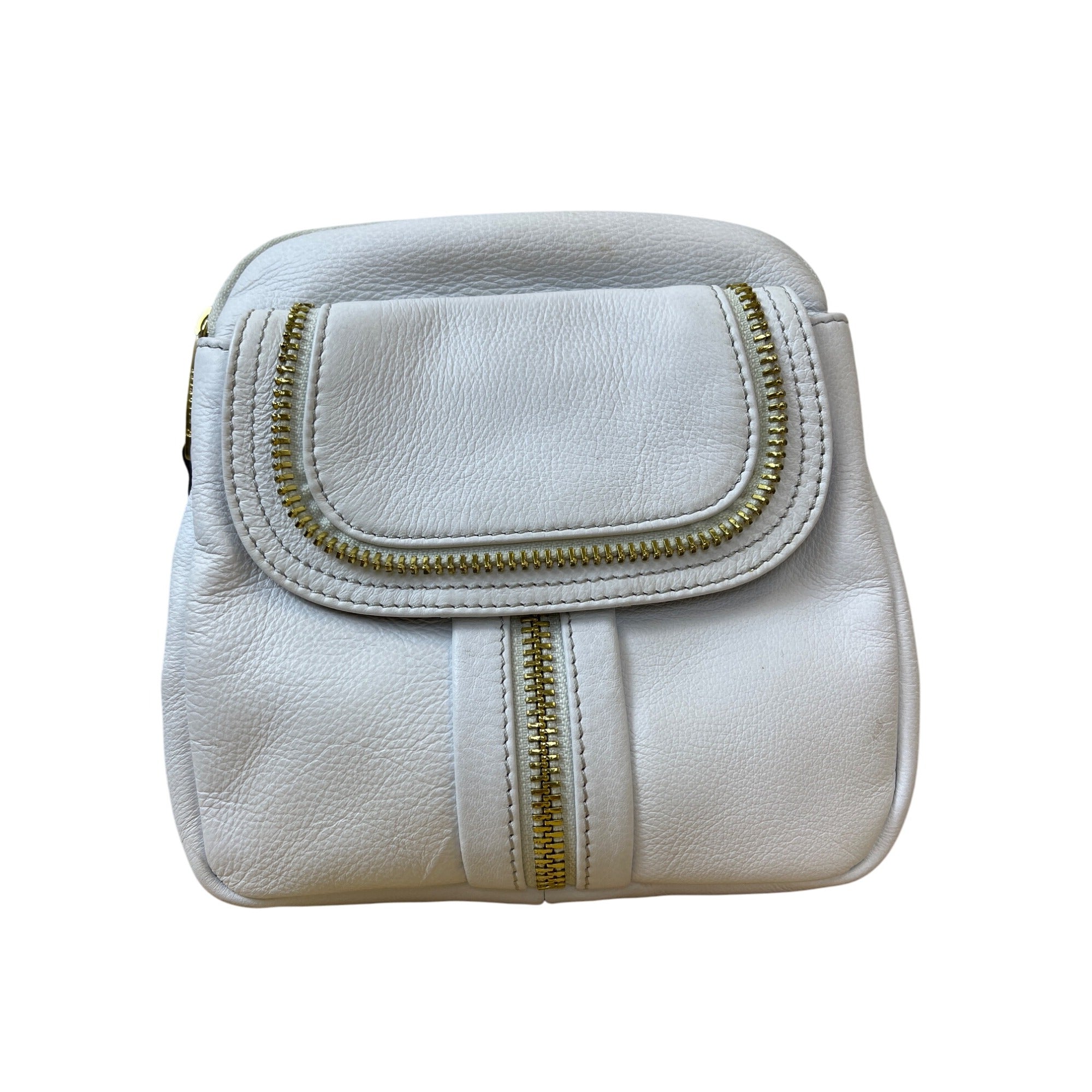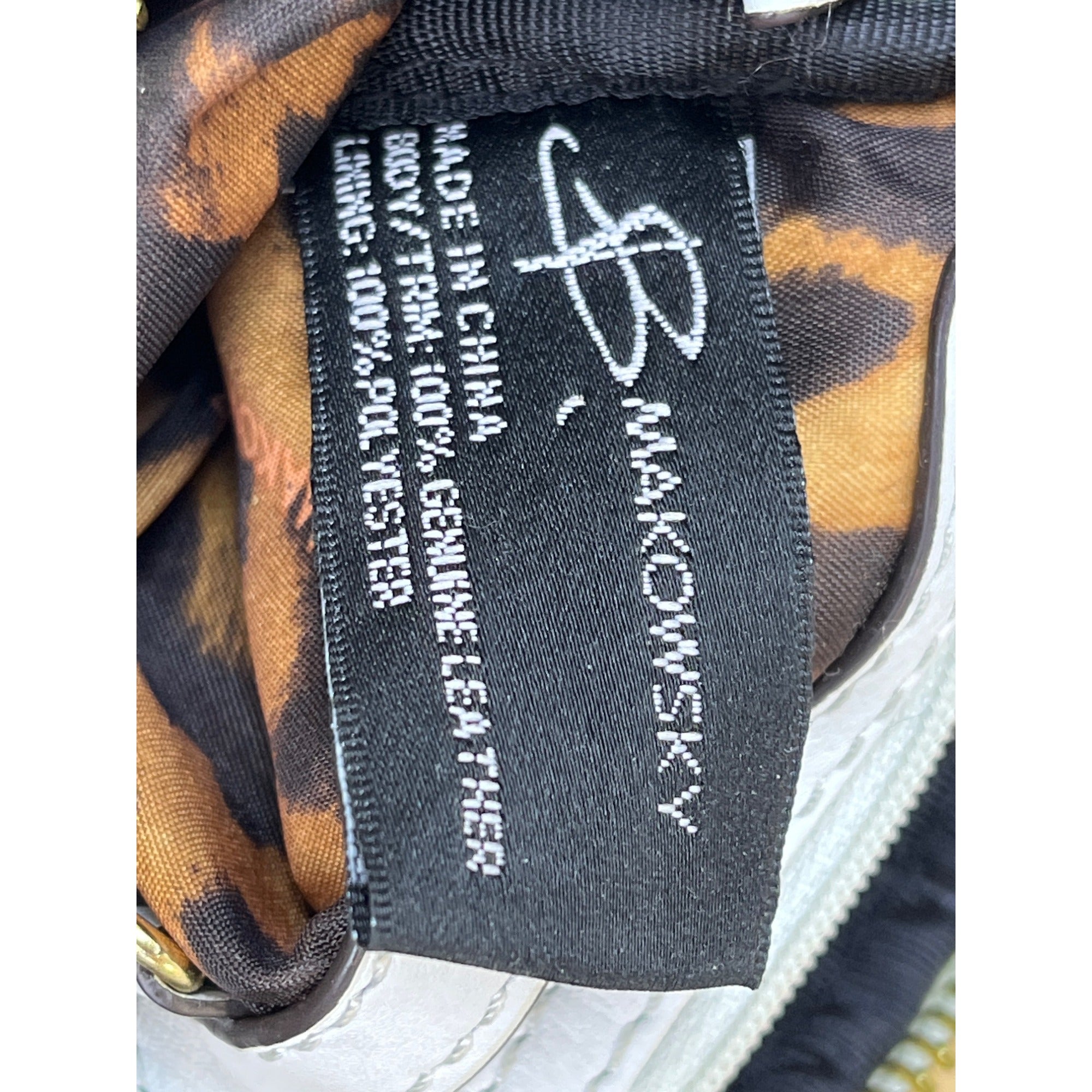 Slight discoloration on the white leather near the zippers; no significant material damage observed.