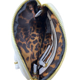 BCBGMaxAzria Womens White Genuine Leather Crossbody Bag With Leopard Print Lining