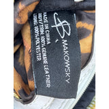 Stylish leather crossbody bag with gold-tone zippers, adjustable strap, and bold leopard-print interior. Compact design with organized compartments adds elegance and function to everyday use.