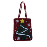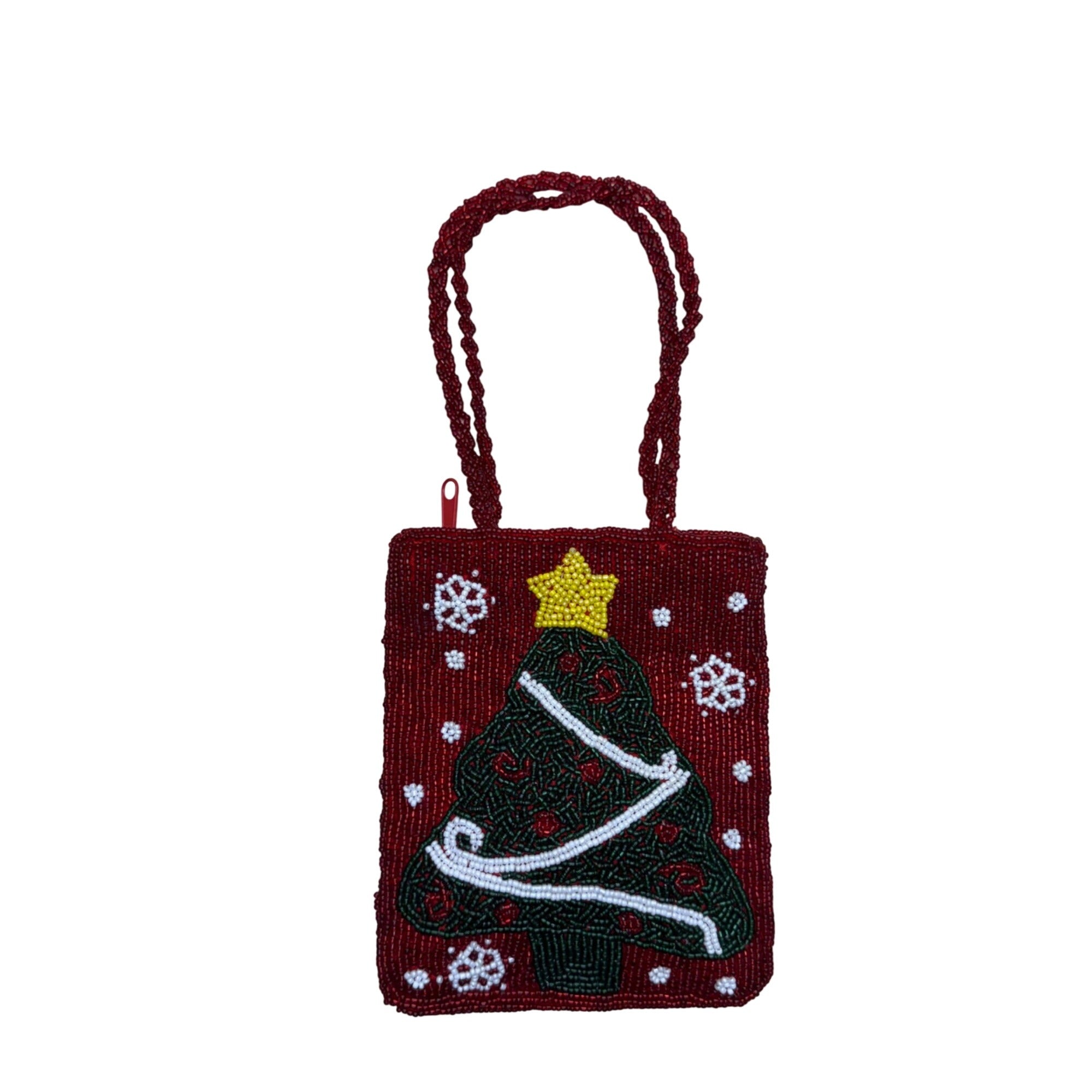 Beaded Christmas Tree Holiday Purse Red Green Handbag with Zipper & Handles