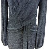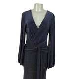 Betsy Adam Black Sparkly Full Length Long Sleeve Wrap Evening Gown Dress Size 10