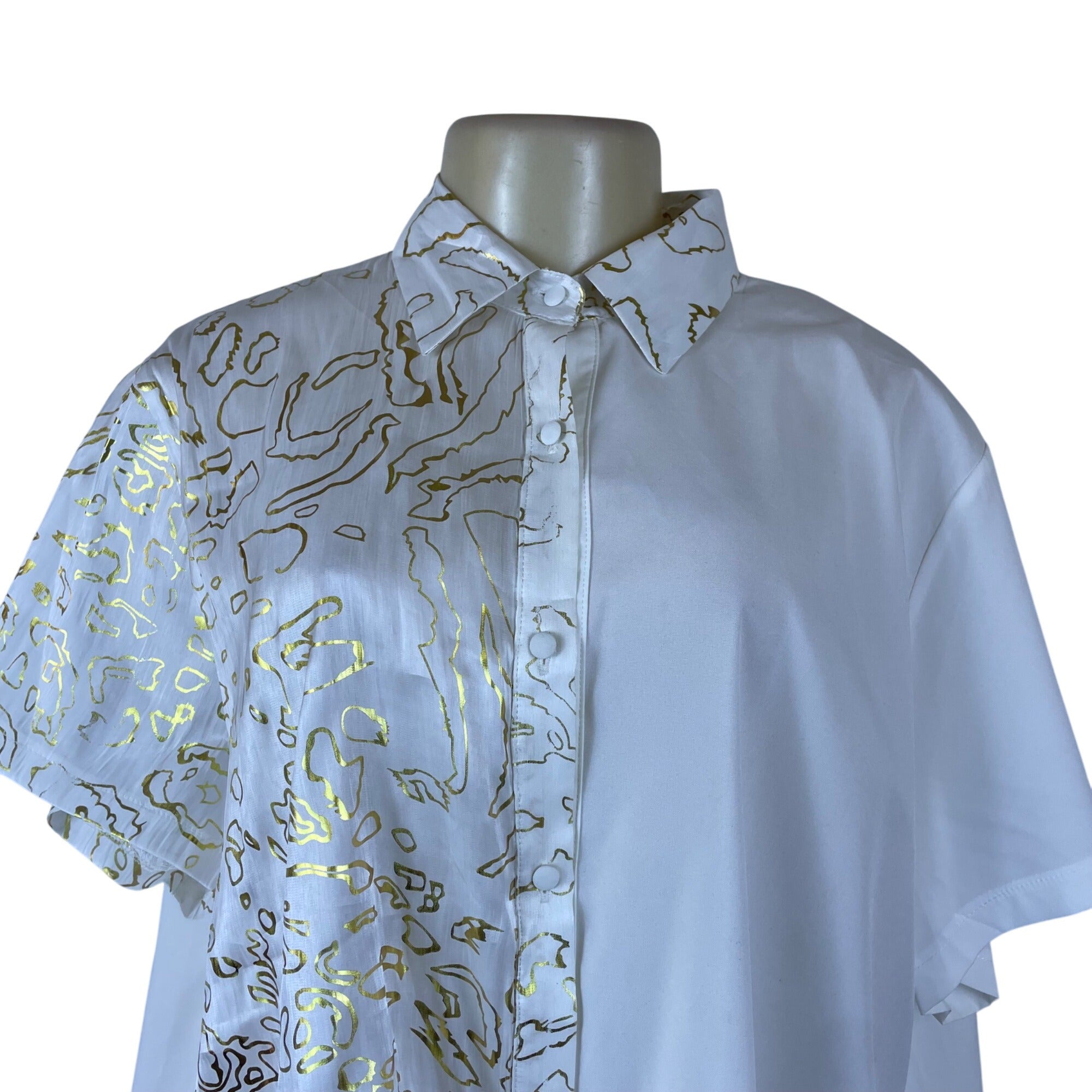 Beulah Women’s White/Gold Short Sleeve Asymmetrical Shirt Dress Size M/L - New