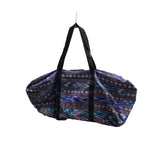 Lightweight, roomy duffle bag with a vibrant patterned design. Features a zipper closure for security and sturdy black handles for carrying convenience.