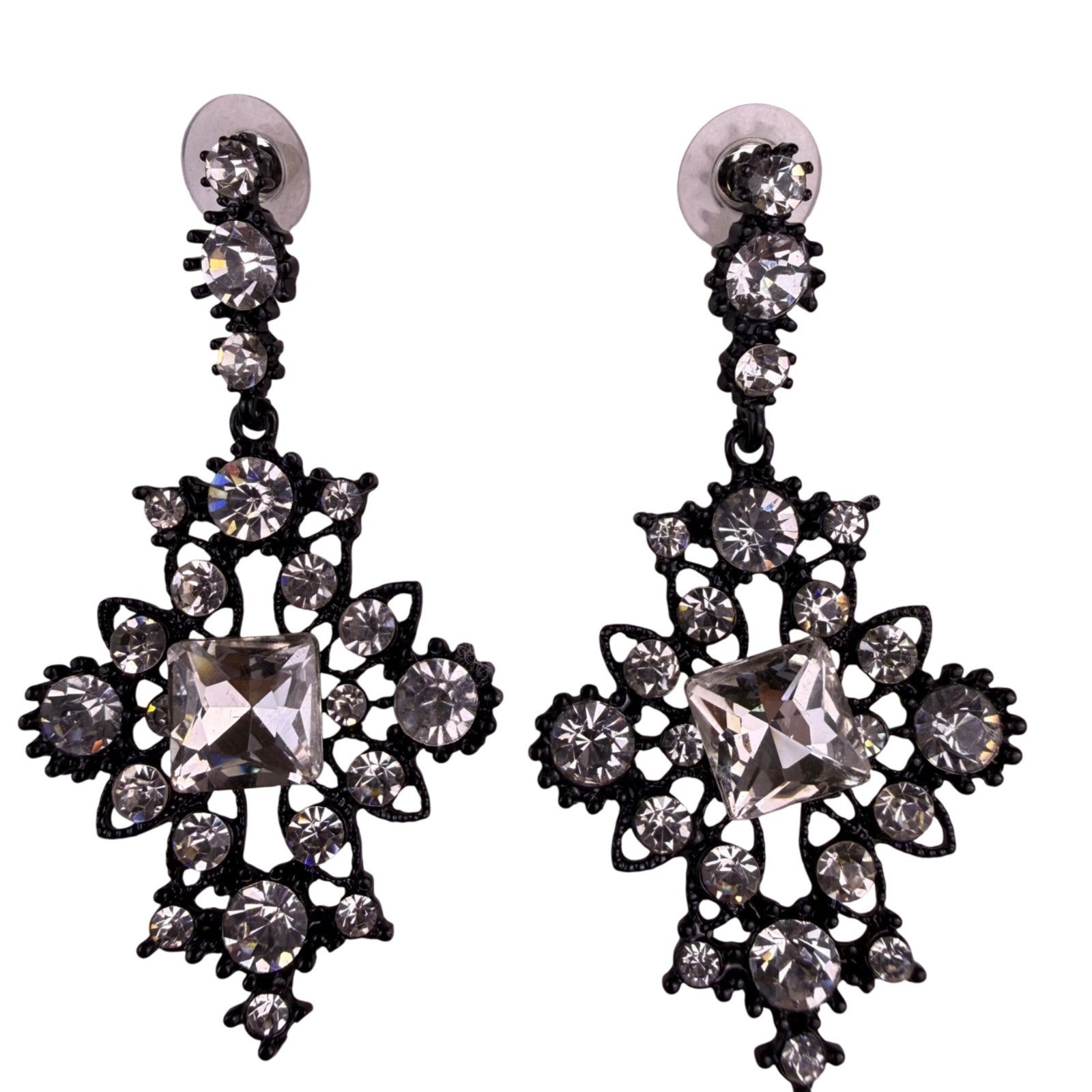 Black Filigree Womens Metal Drop Earrings Rhinestone Embellished Statement
