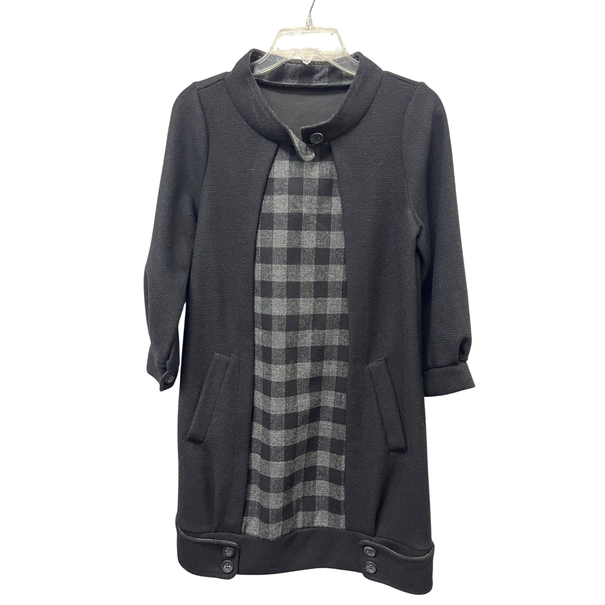 Black & Gray Womens Checkered Accent Long Sleeve Cardigan Style Coat Dress OS