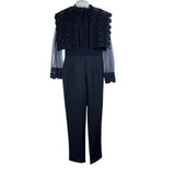 Black Lace Overlay Sheer Sleeve Womens Jumpsuit Size M Formal Semi-Fitted Elegant Design Black Lace Overlay Sheer Sleeve Womens Jumpsuit Size M Formal Semi-Fitted Elegant Design