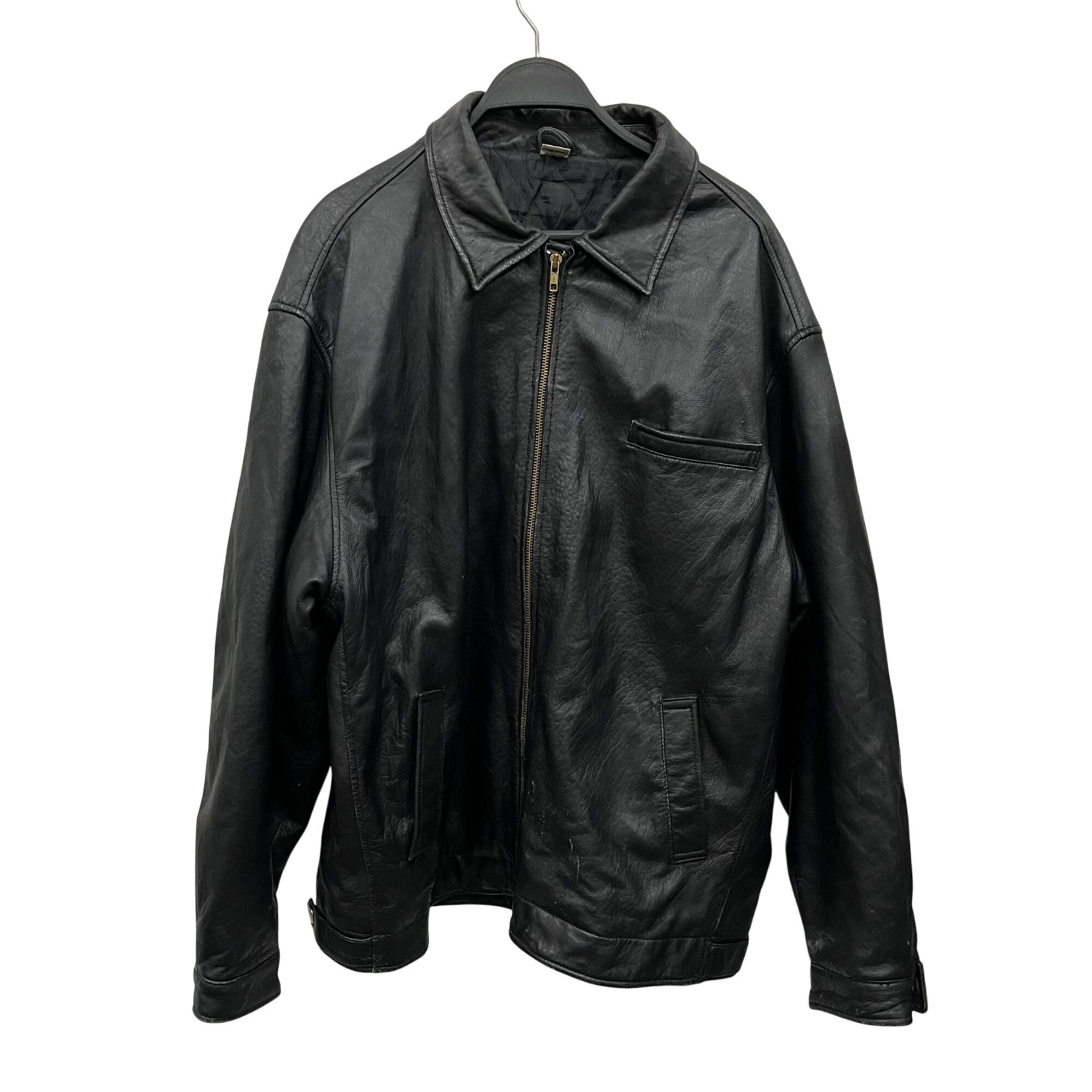 Black Leather Mens Jacket Large Full-Zip Classic Style By China Polyester Lining