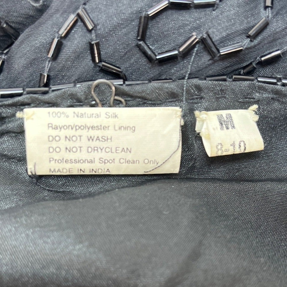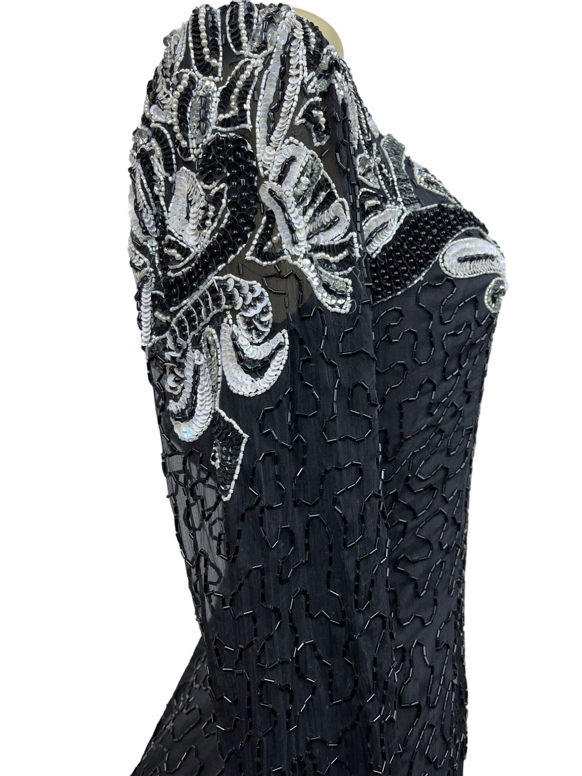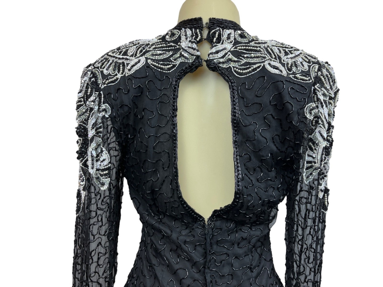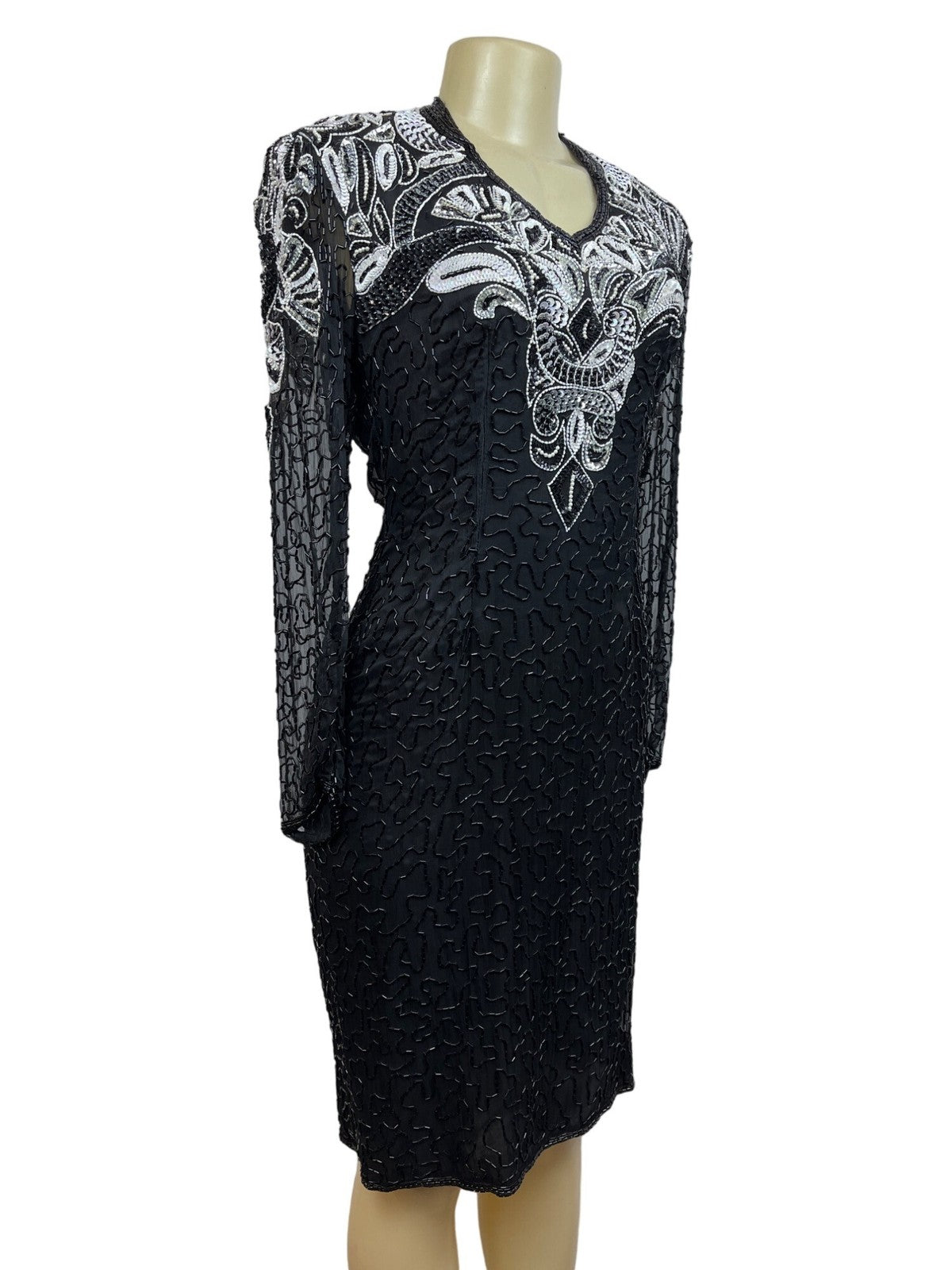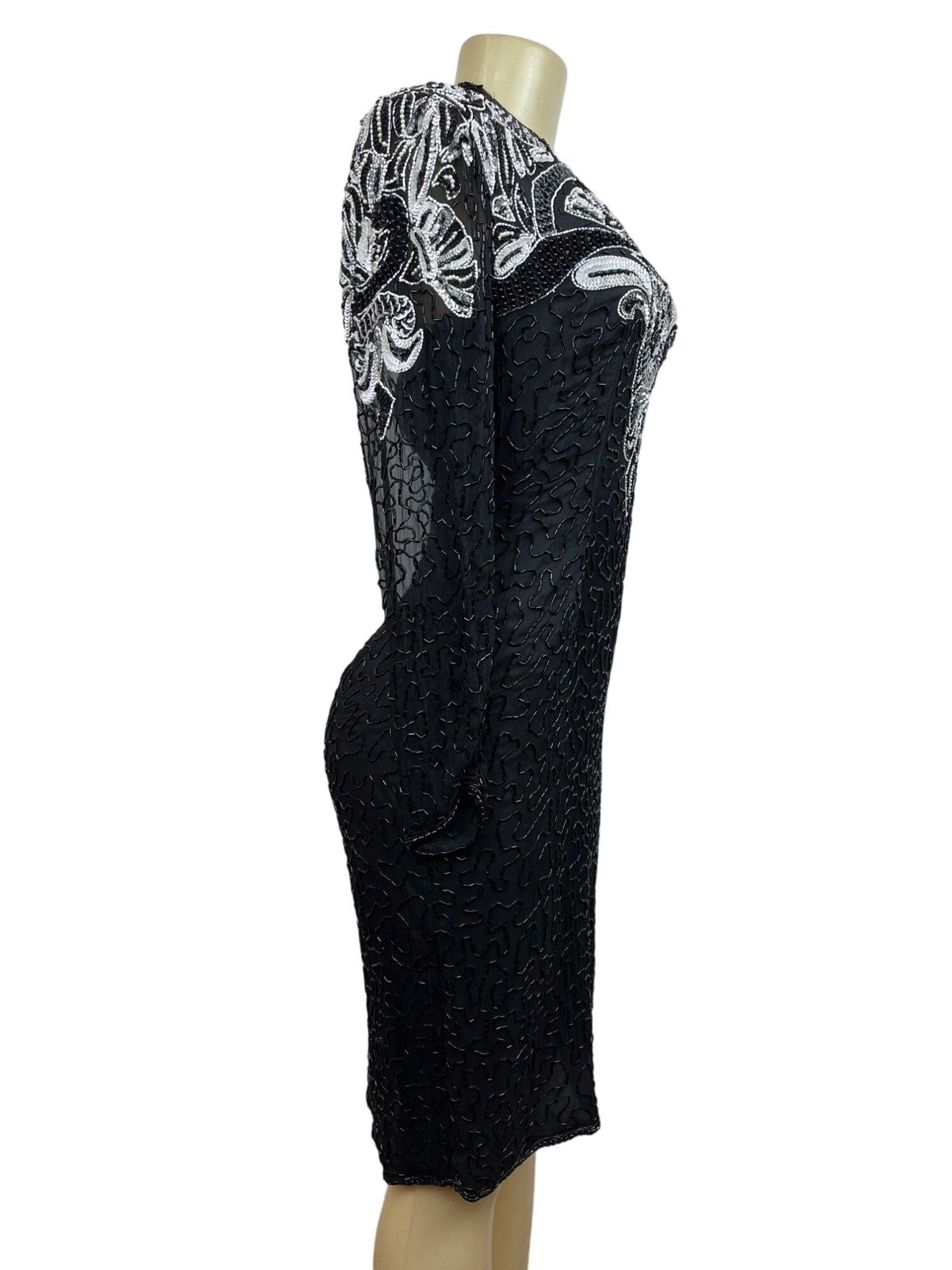 Black & Silver Sequin Beaded Womens Dress Long Sleeve Elegant Design Size M