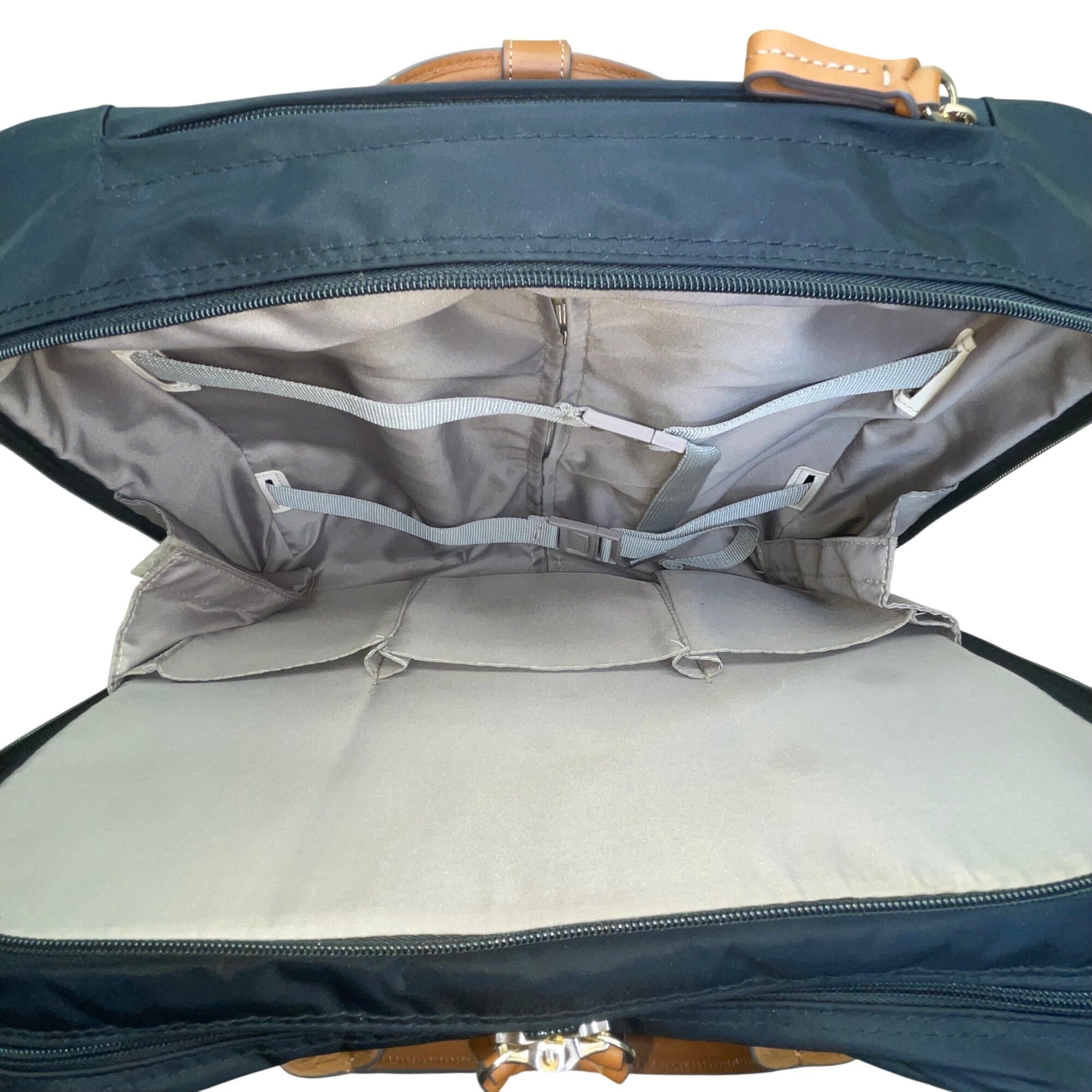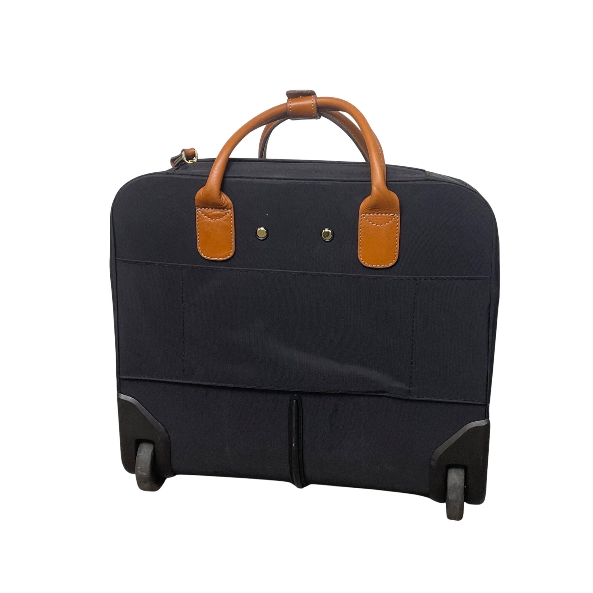 Brics Men’s Black Nylon & Brown Leather Rolling Travel Tote Carry-On Luggage