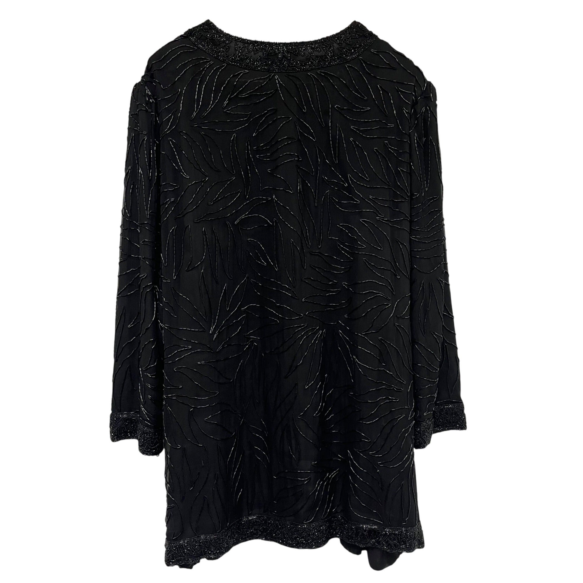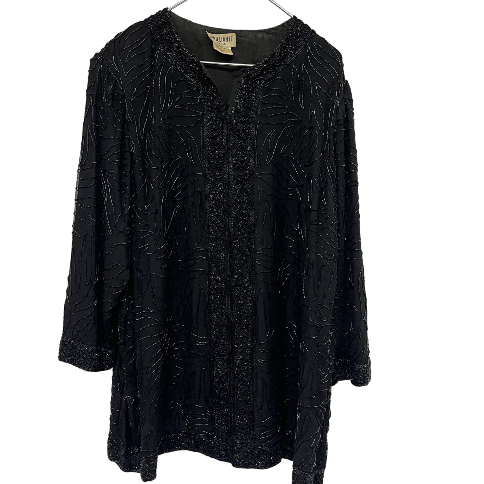 Brilliante By J.A. Womens Black Beaded Cocktail Jacket 3X Elegant Evening Leaf Pattern