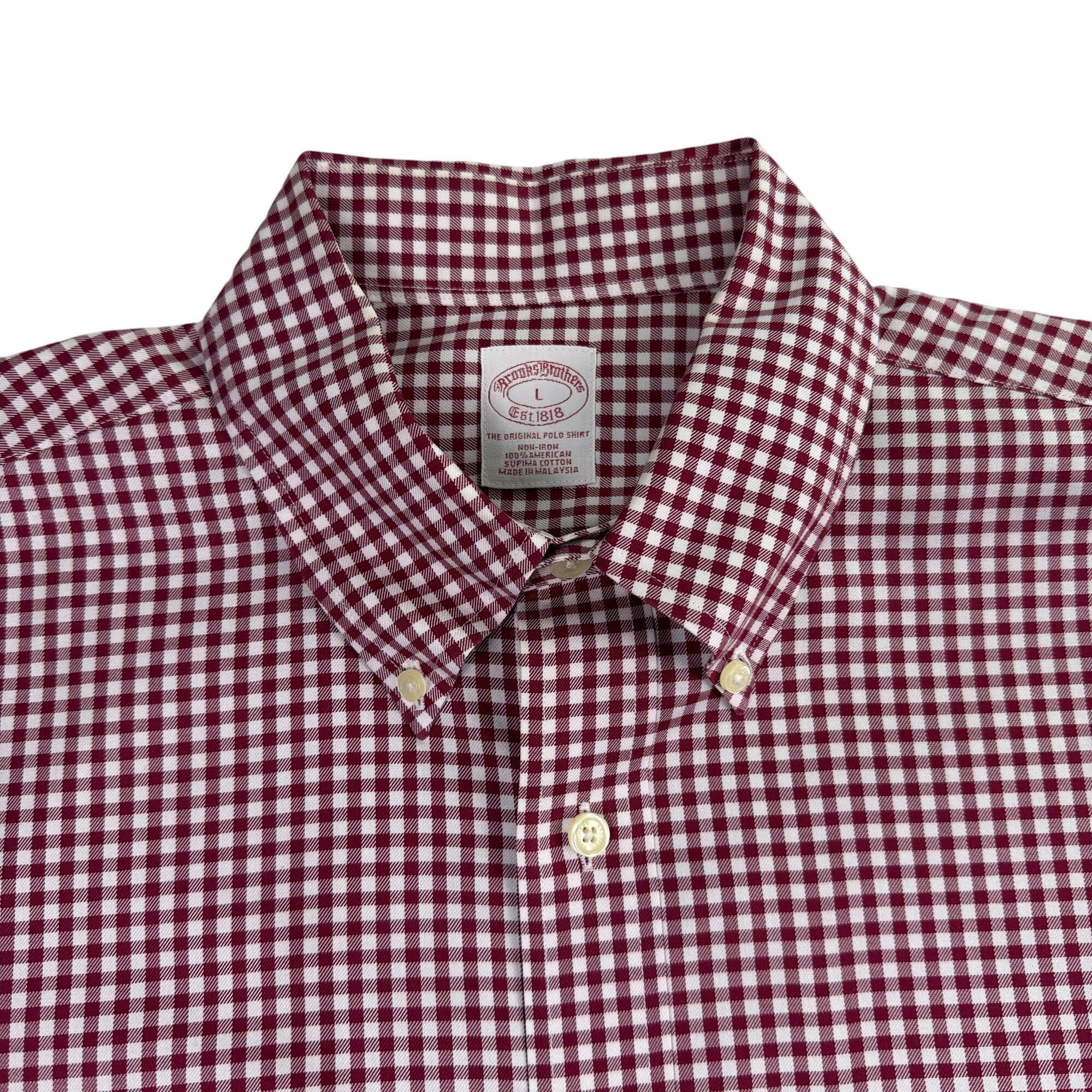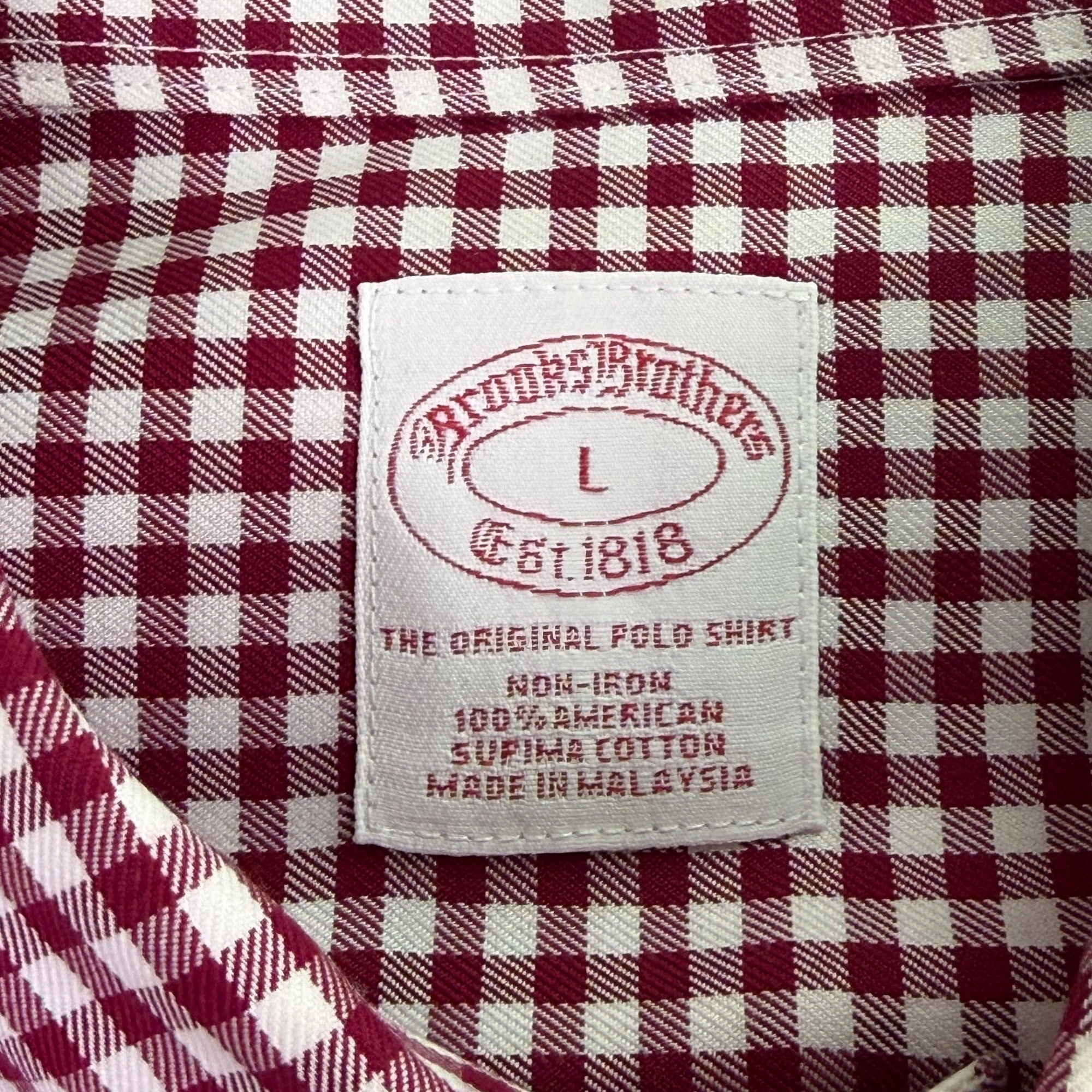 Brooks Brothers Mens Burgundy/White Checkered Long-Sleeve Button-Down Shirt Sz L
