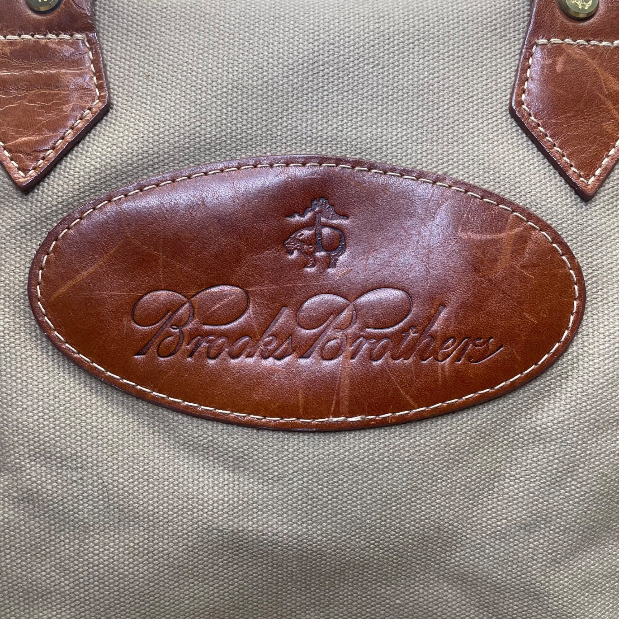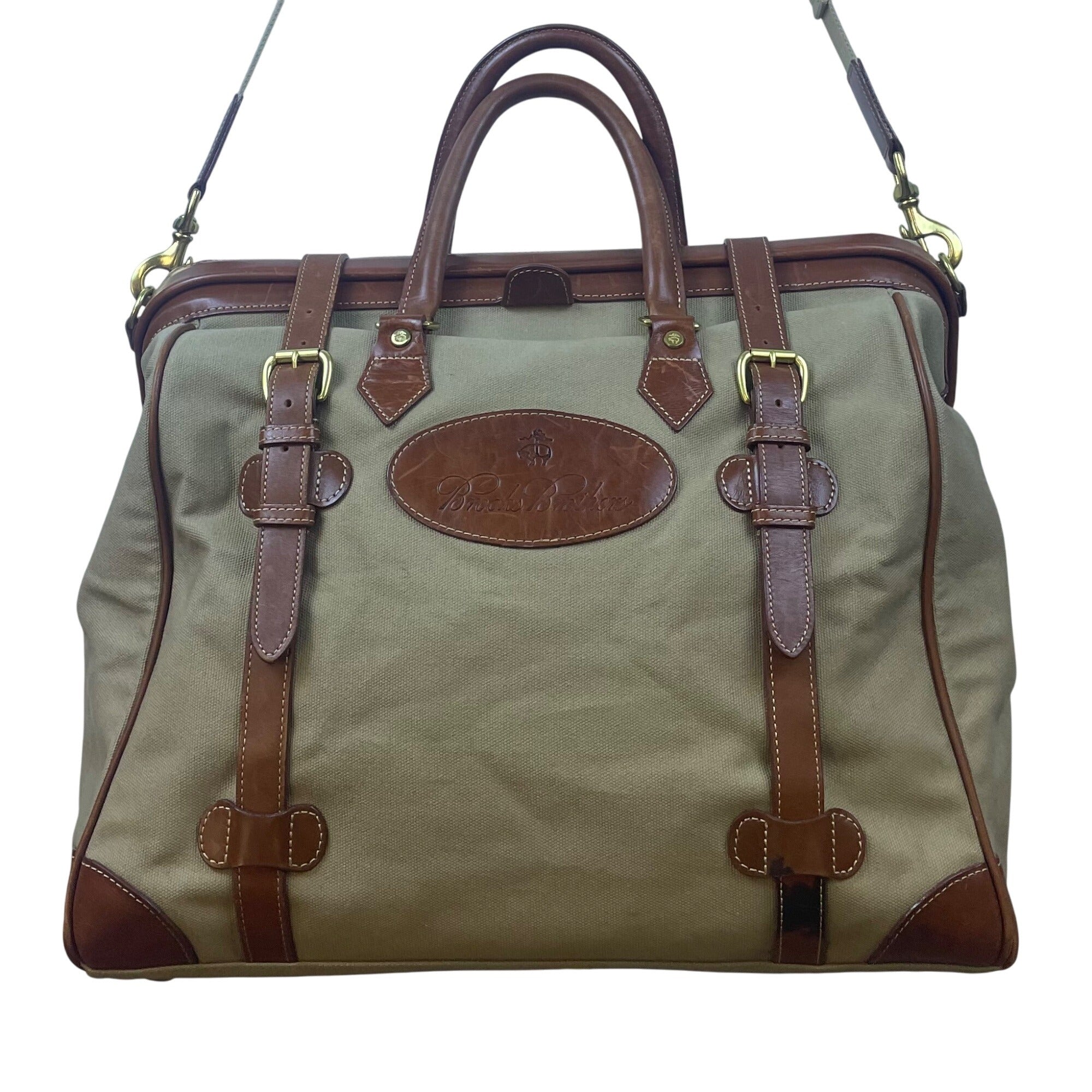 Brooks Brothers Men's Grey & Brown Canvas Leather With Shoulder Strap Travel Bag