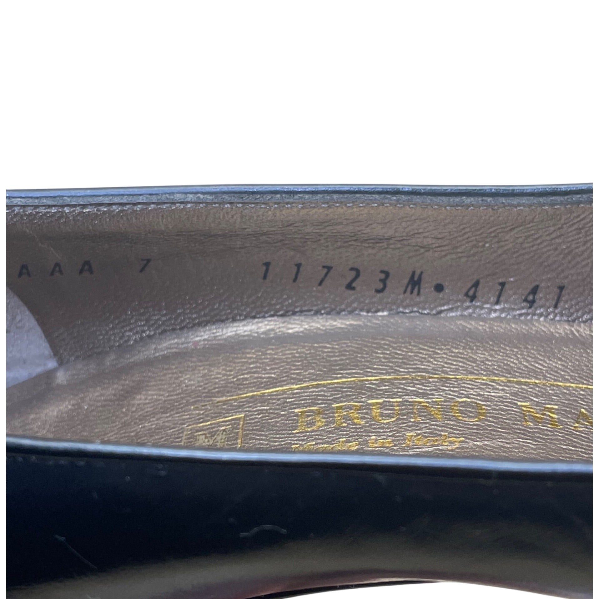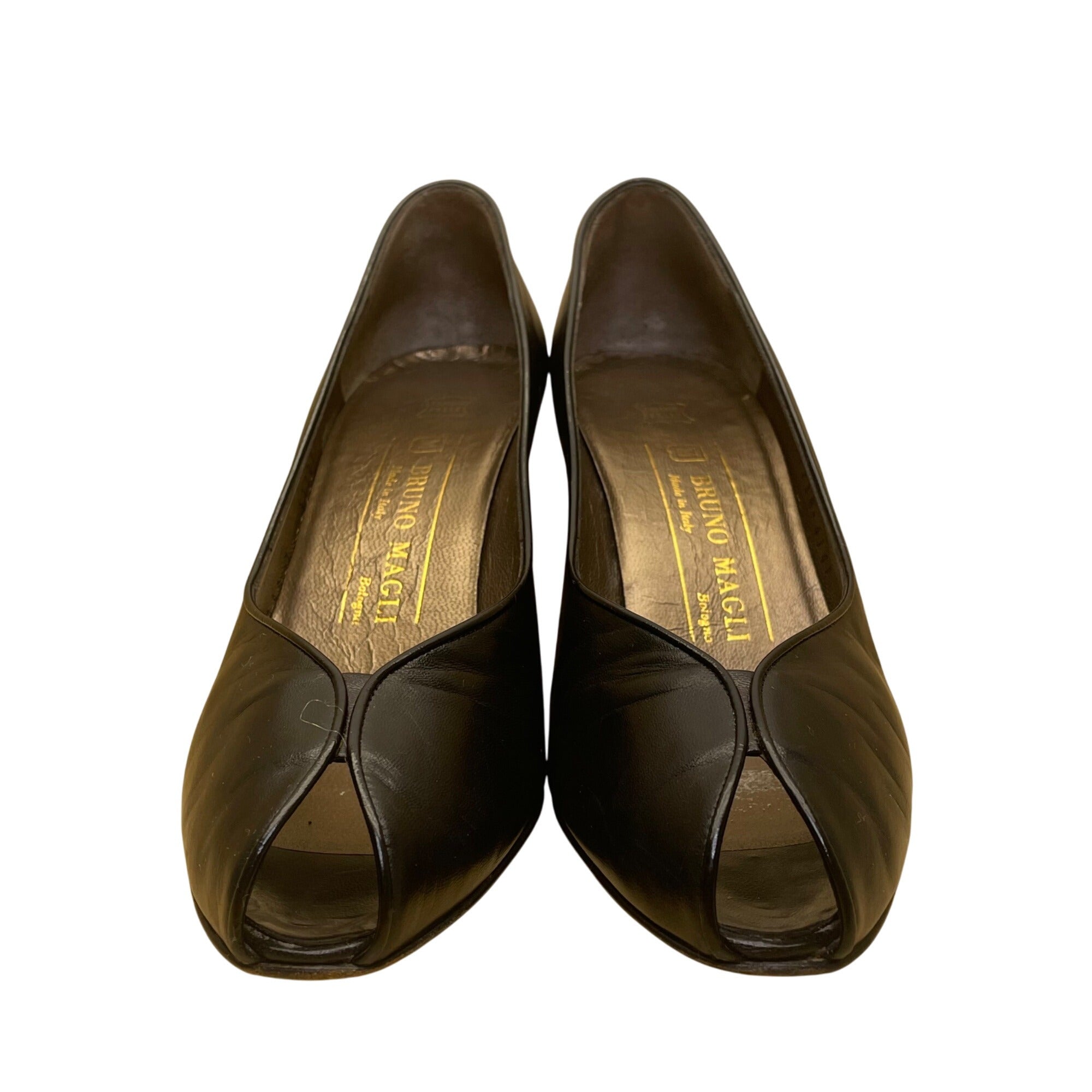 Bruno Magli Women’s Black Leather Peep Toe Heels AAA Narrow Pumps Size 7