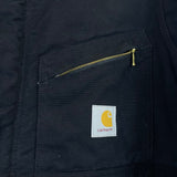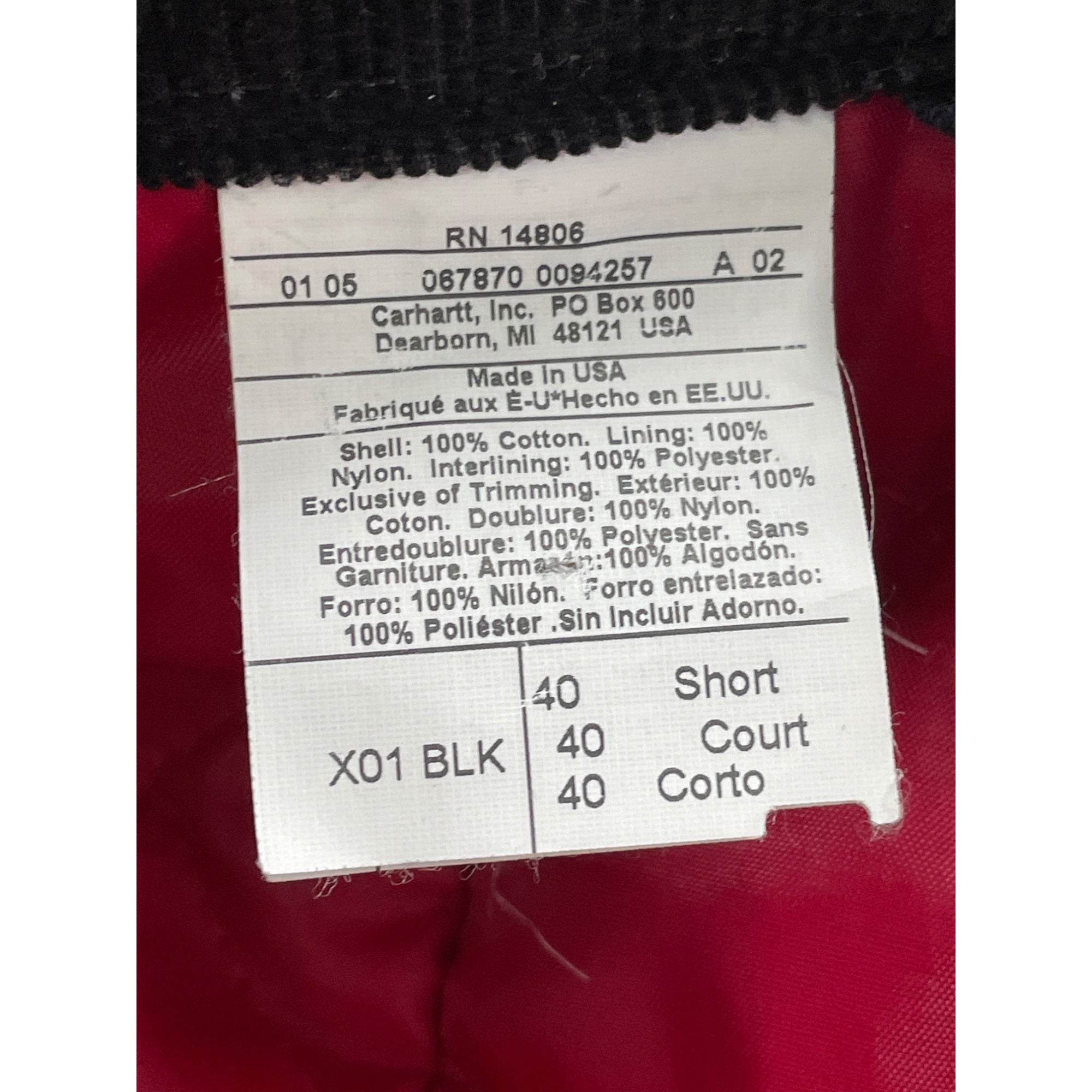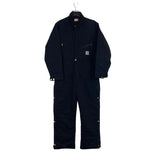 Carhartt Mens Black Cotton Canvas Coverall Insulated Workwear Size L This Carhartt men's black insulated workwear coverall is crafted from durable cotton canvas, ideal for heavy-duty jobs. The classic fit features gold-tone snap closures, a zippered chest pocket, adjustable cuffs, and multiple utility pockets. Its insulated design enhances warmth and comfort. Perfect for all-season use.