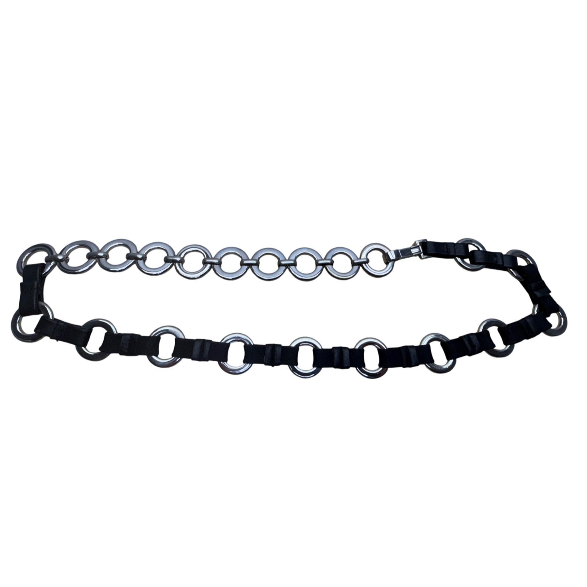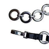 Chain Link & Faux Leather Belt Silver/Black Metal 34 Inches Adjustable Modern Design