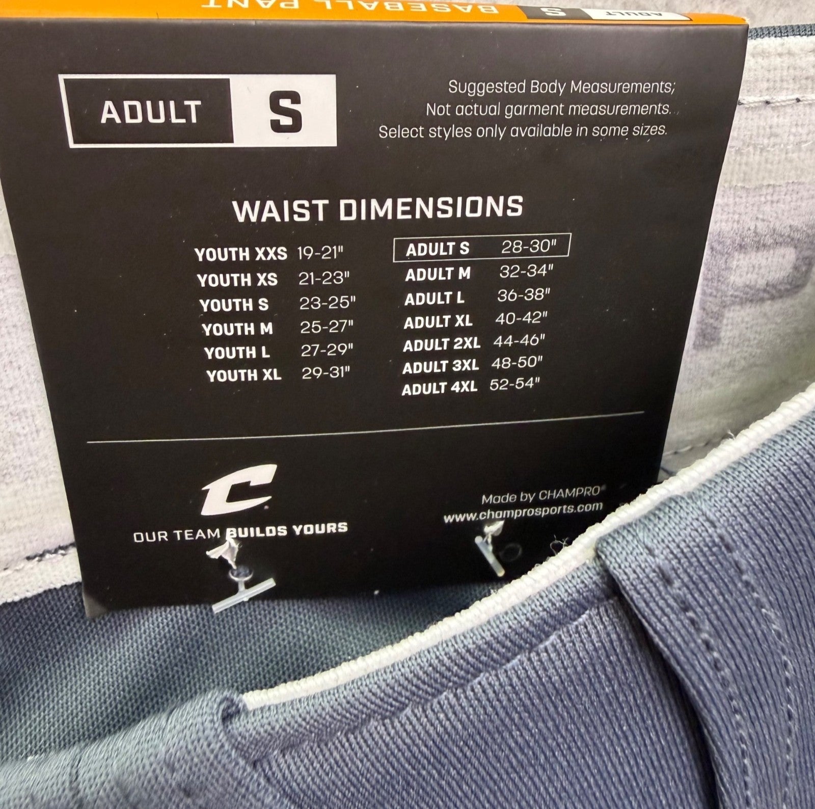 Champro Mens Gray Baseball Pants Open Bottom Royal Stripes Durable Sz S - New