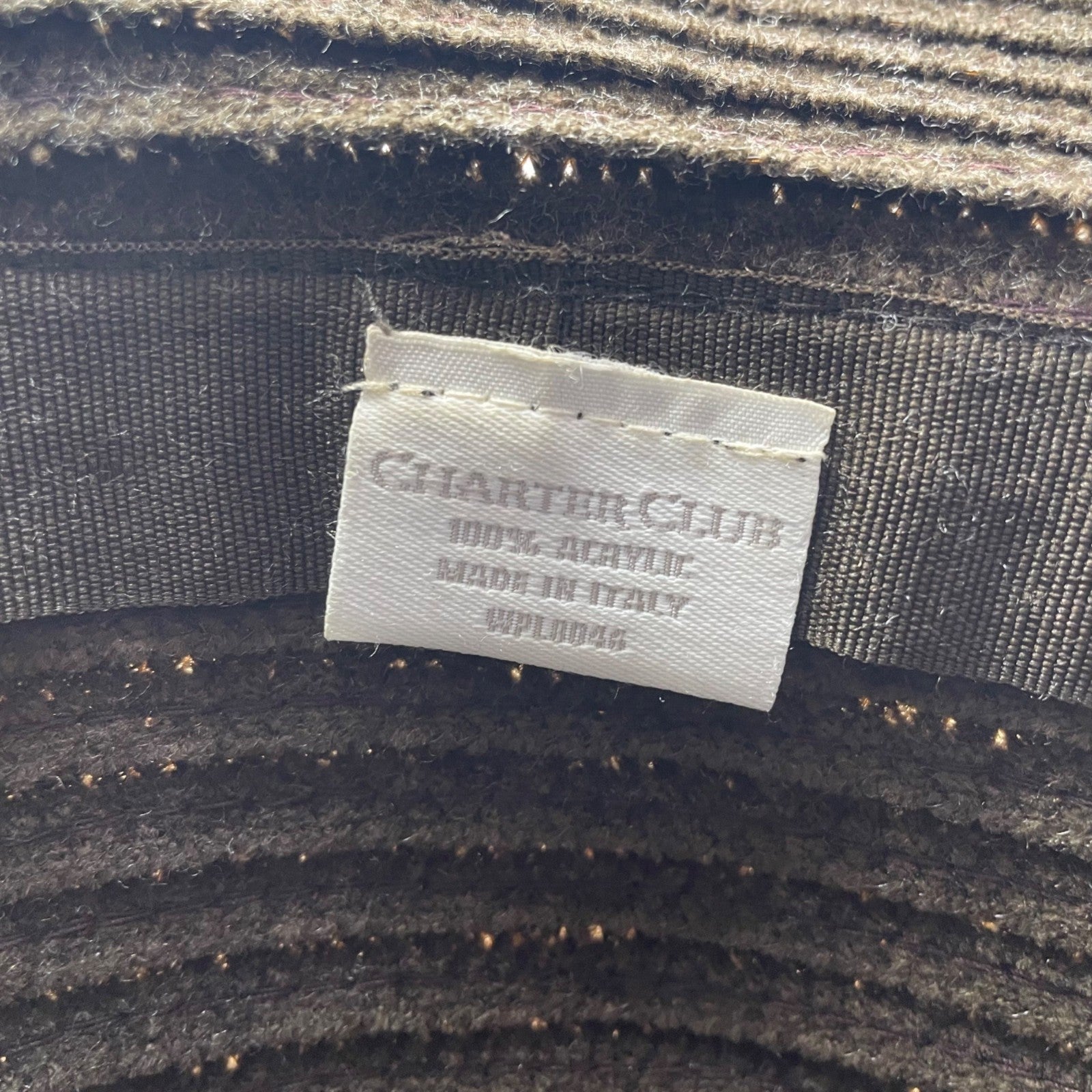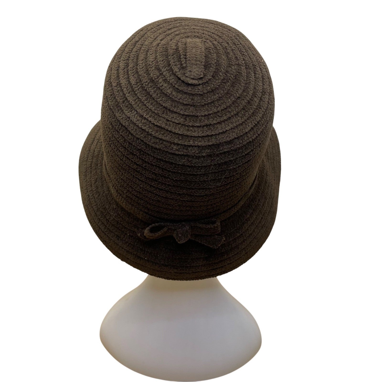 Charter Club Brown Fabric Bucket Hat Woven Texture Bow Accent