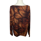 Chicos Design Brown And Orange Autumn Leaf Print Long Sleeve Womens Shirt Sz 3