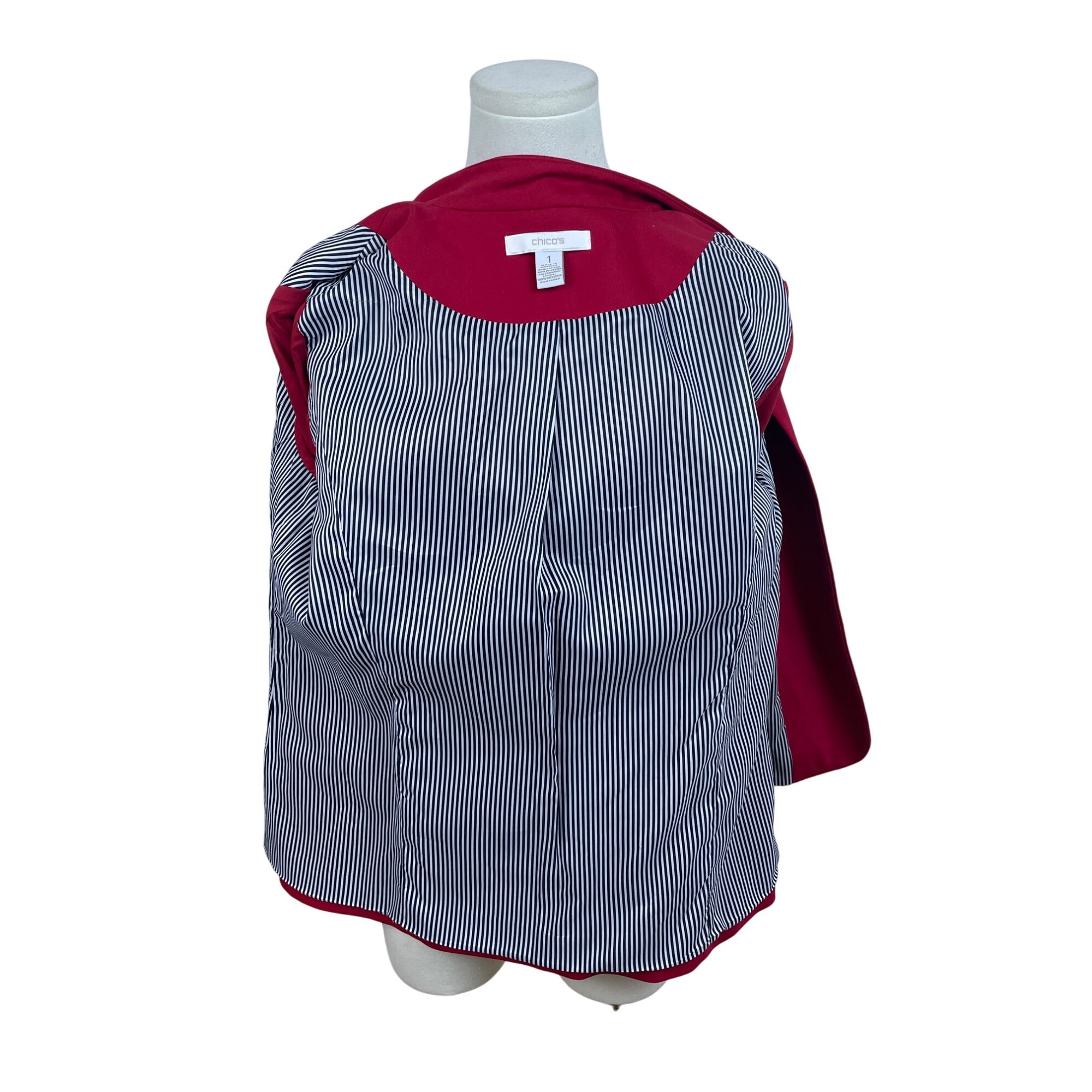 Chicos Red Women's Blazer Jacket With Unique Collar And Zipper Pocket Size 1