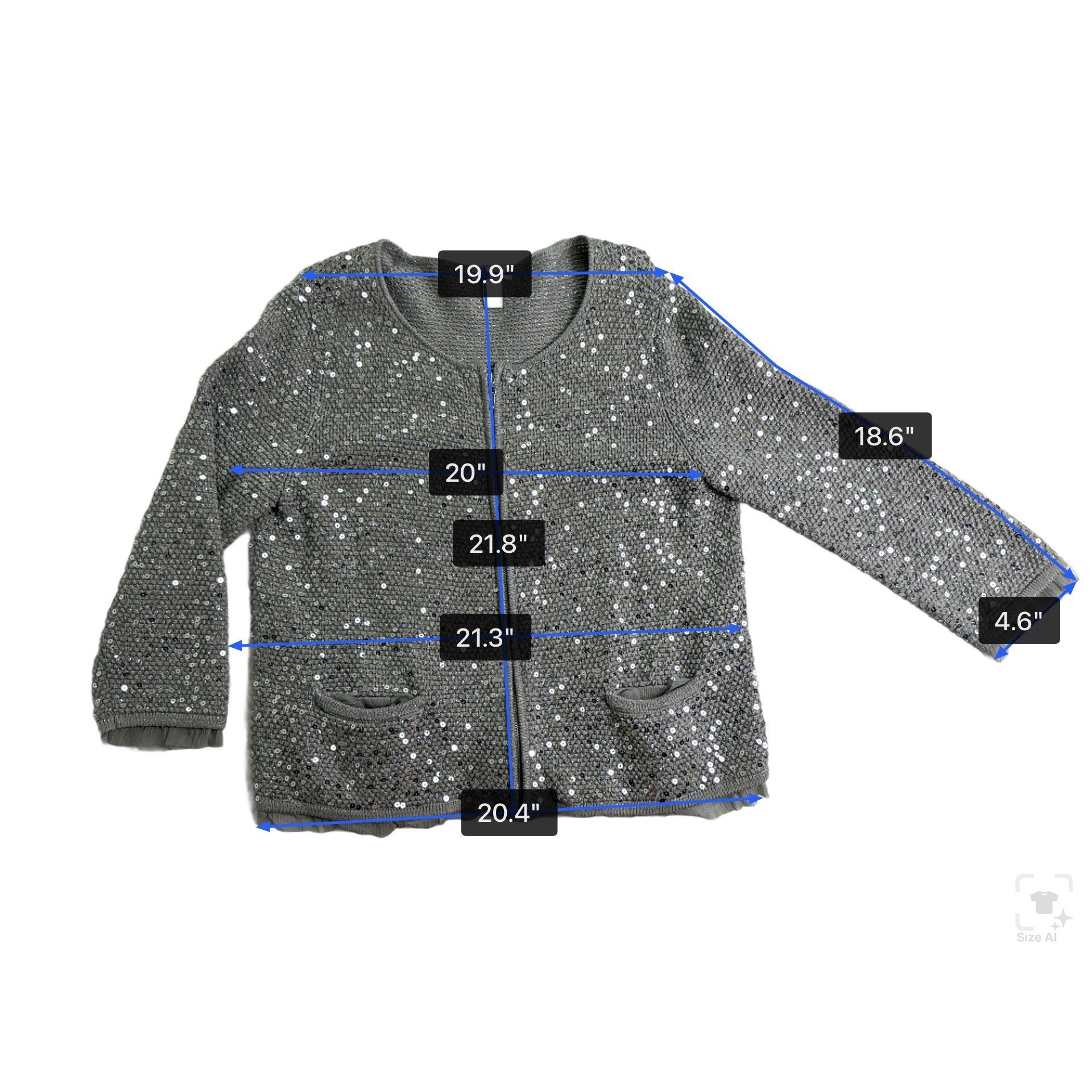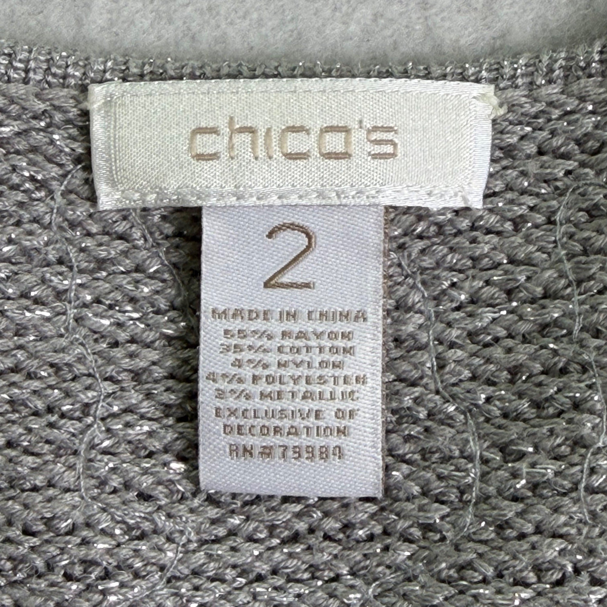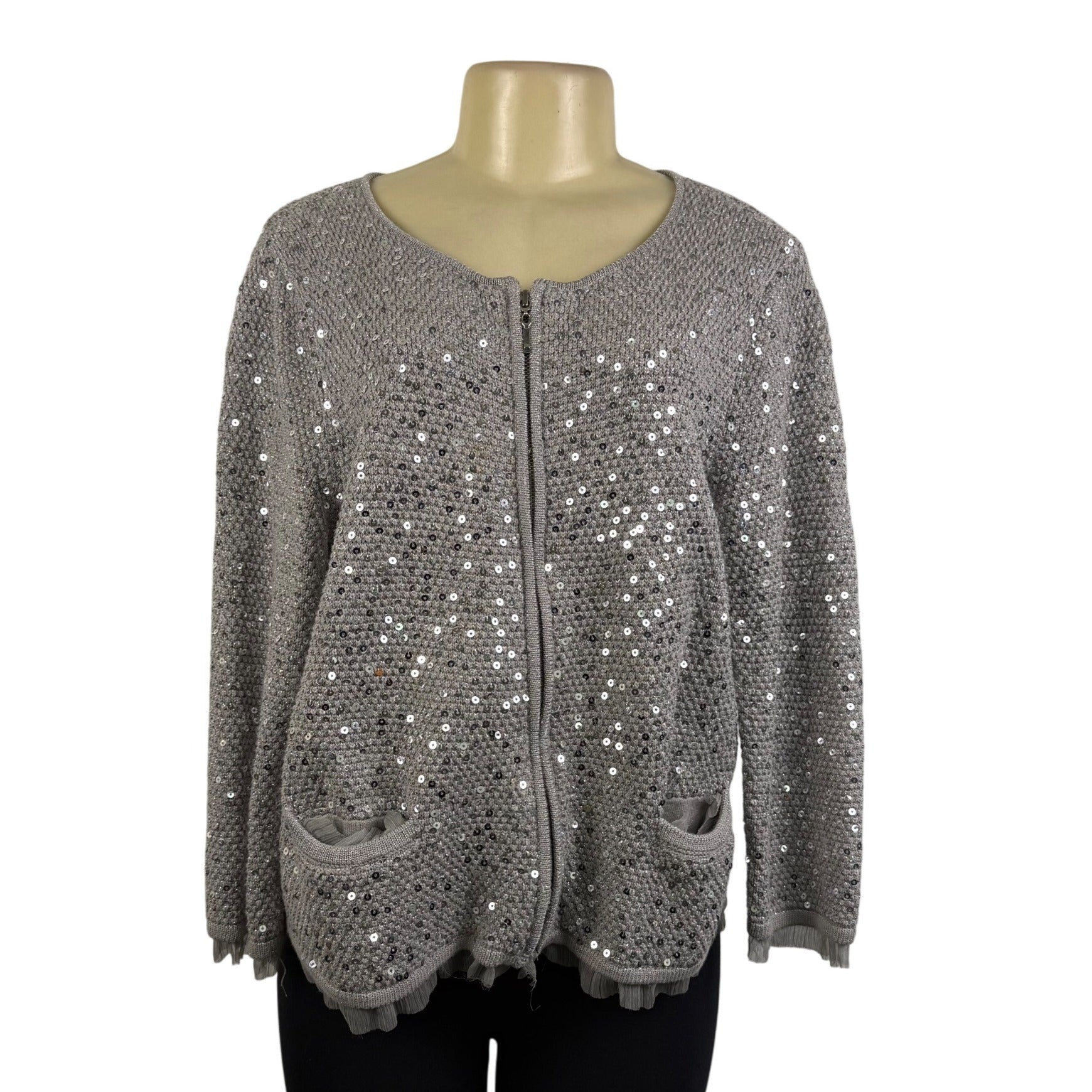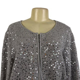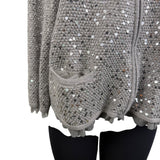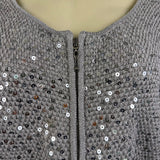 Chicos Womens Gray Rayon & Cotton Sequin Zip-Up Cardigan Sweater Size 2