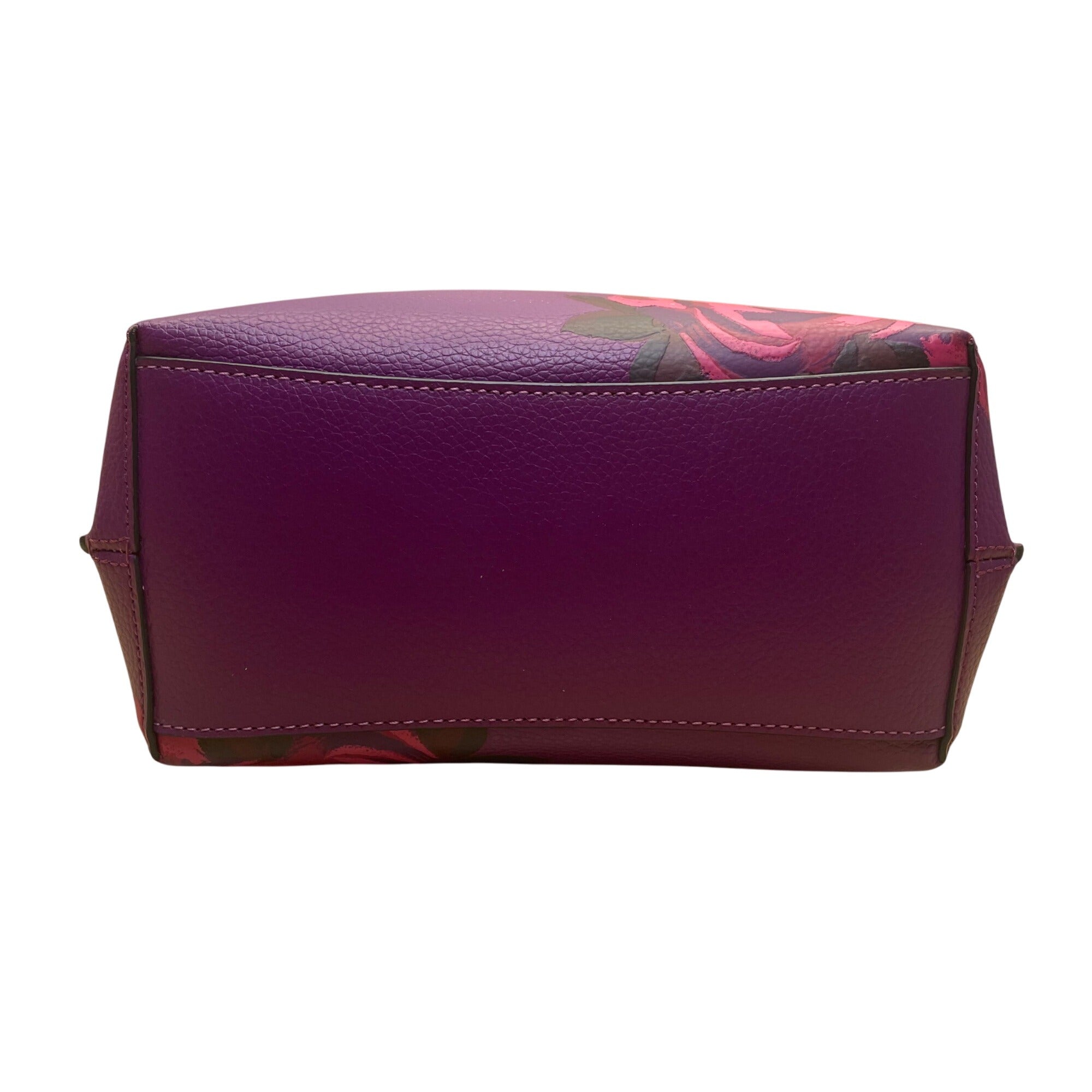 Coach Women’s Purple Leather Rose Print Adjustable Crossbody Molly Bucket Bag