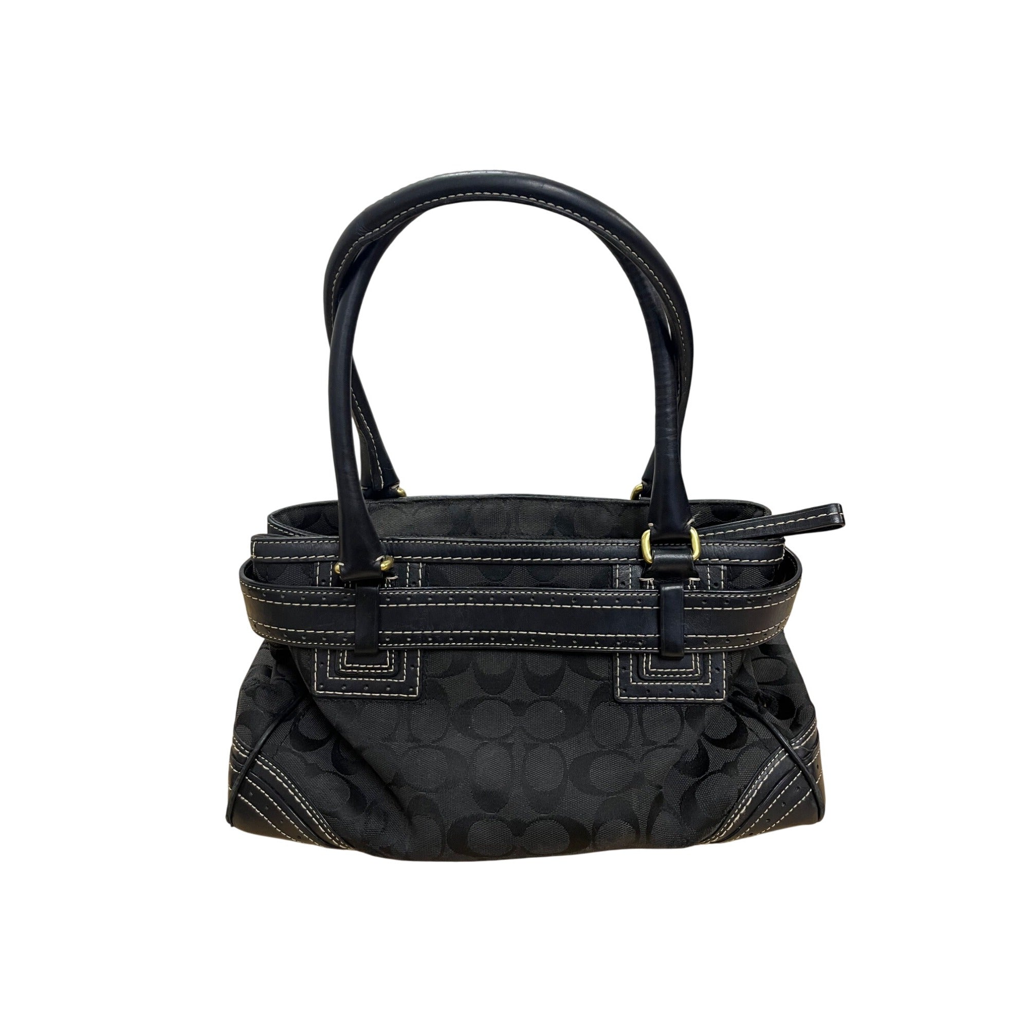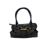 Coach Womens Black Canvas Satchel Bag Gold Hardware Leather Trim Medium Size Stylish