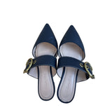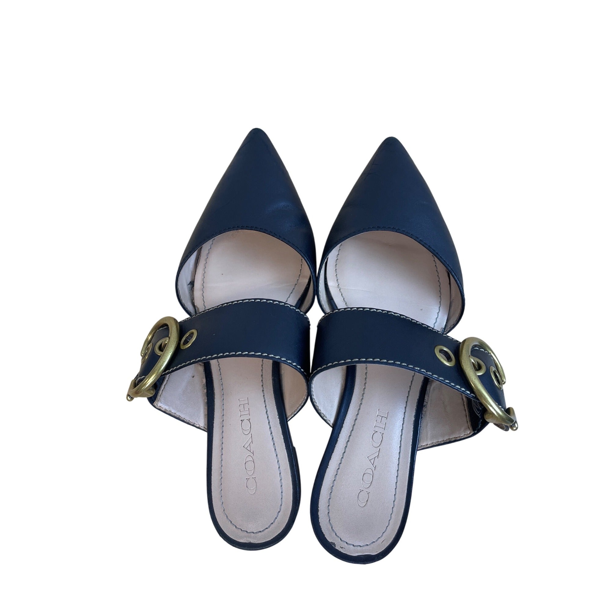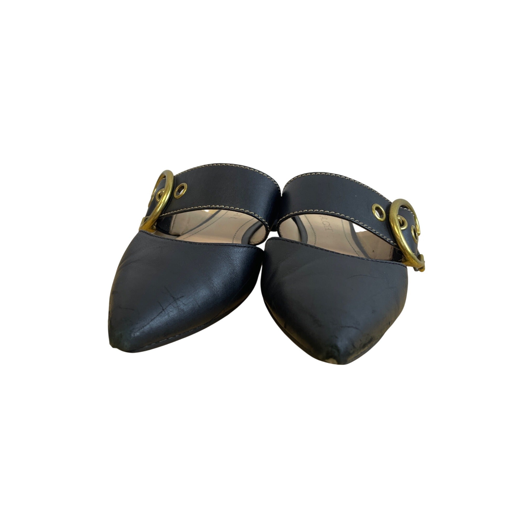 Coach Womens Black Leather Pointed-Toe Mules Gold Buckle Size 6.5B Stylish Slip-Ons