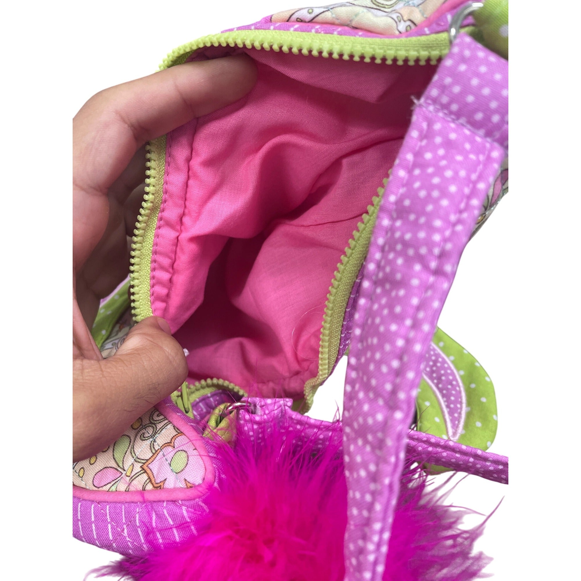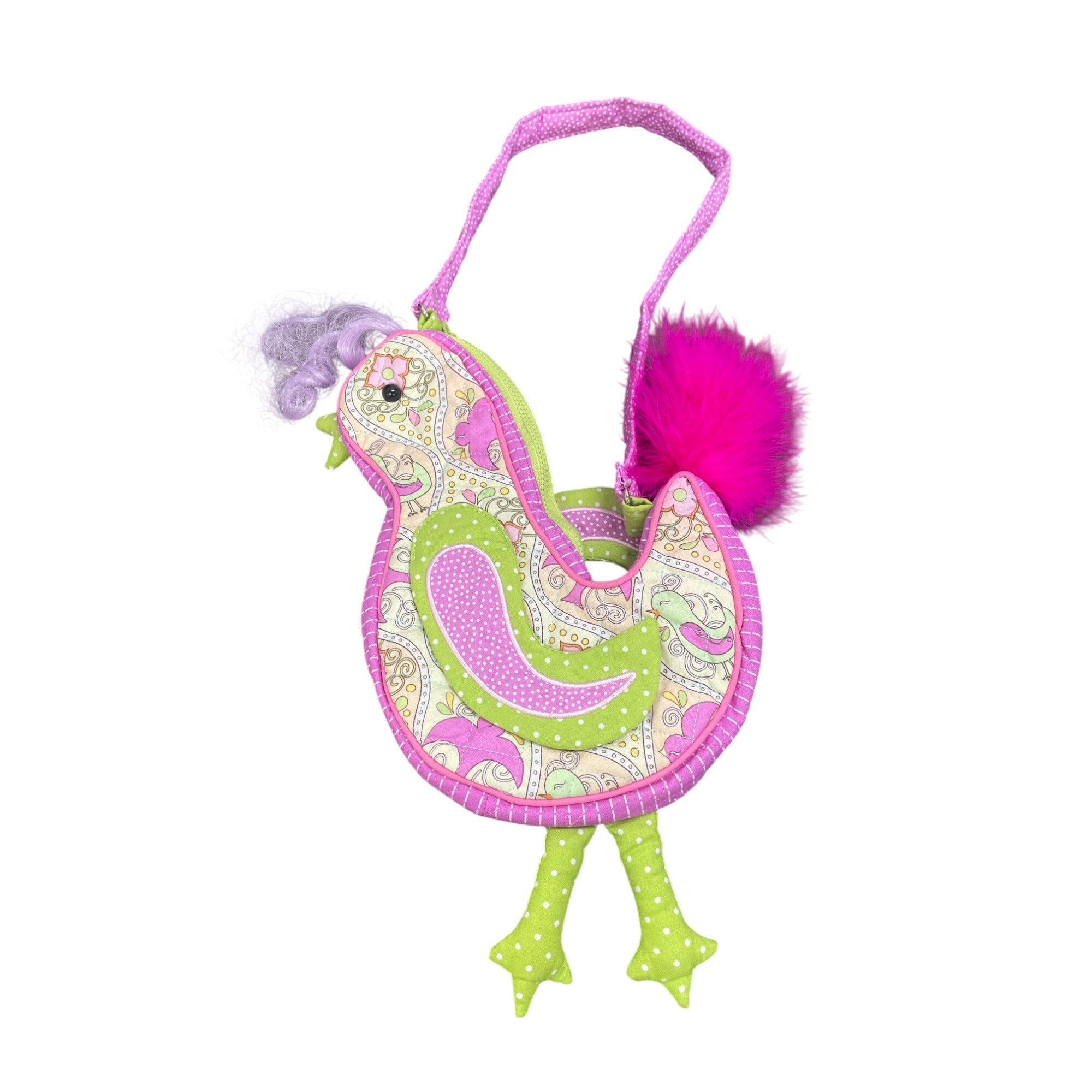 Colorful Bird-Shaped Kids Purse With Pink Strap Soft Fabric Decorative Feather & Zipper Closure