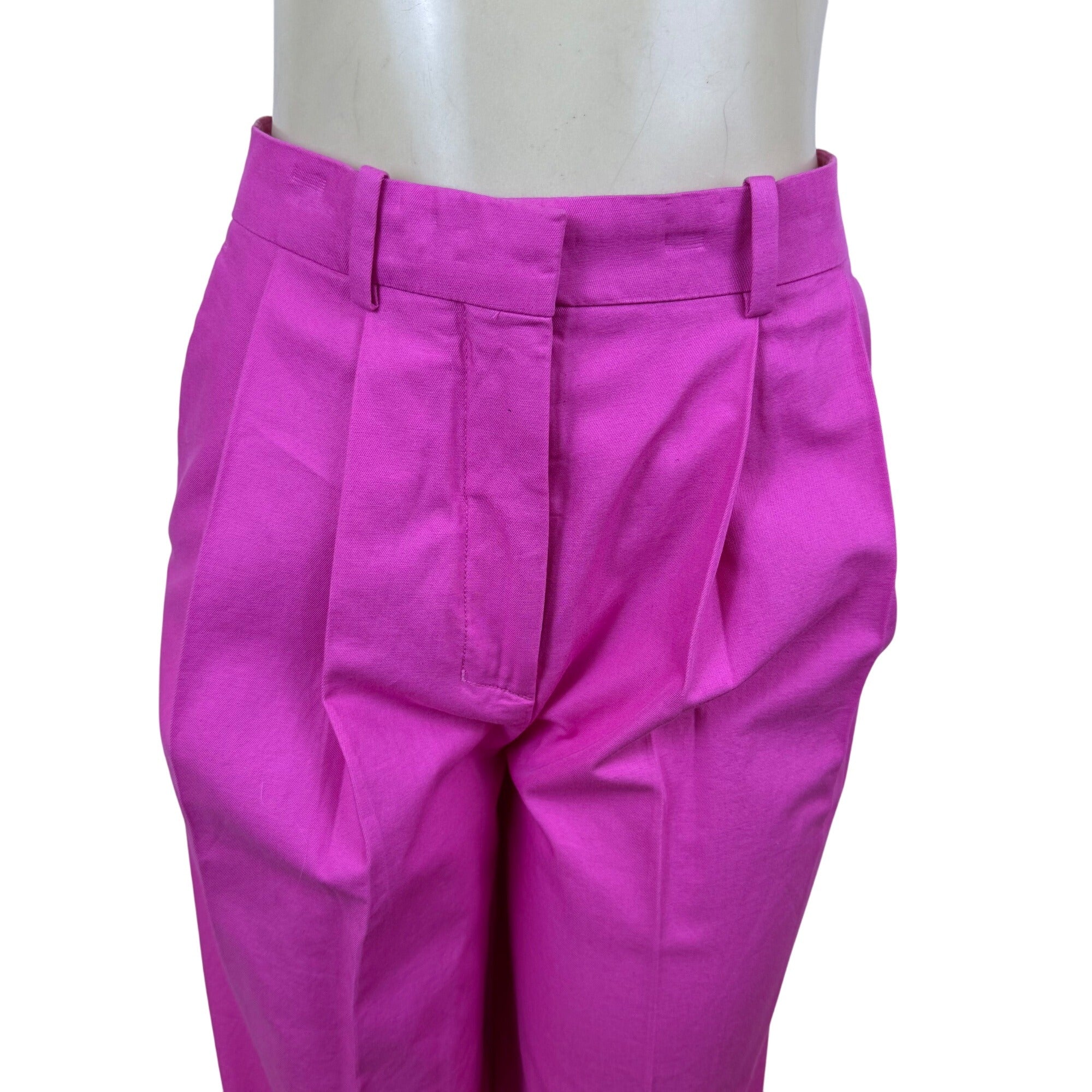 Cos Women’s Pink Cotton Pleated High-Waist Wide-Leg Trousers Size 2