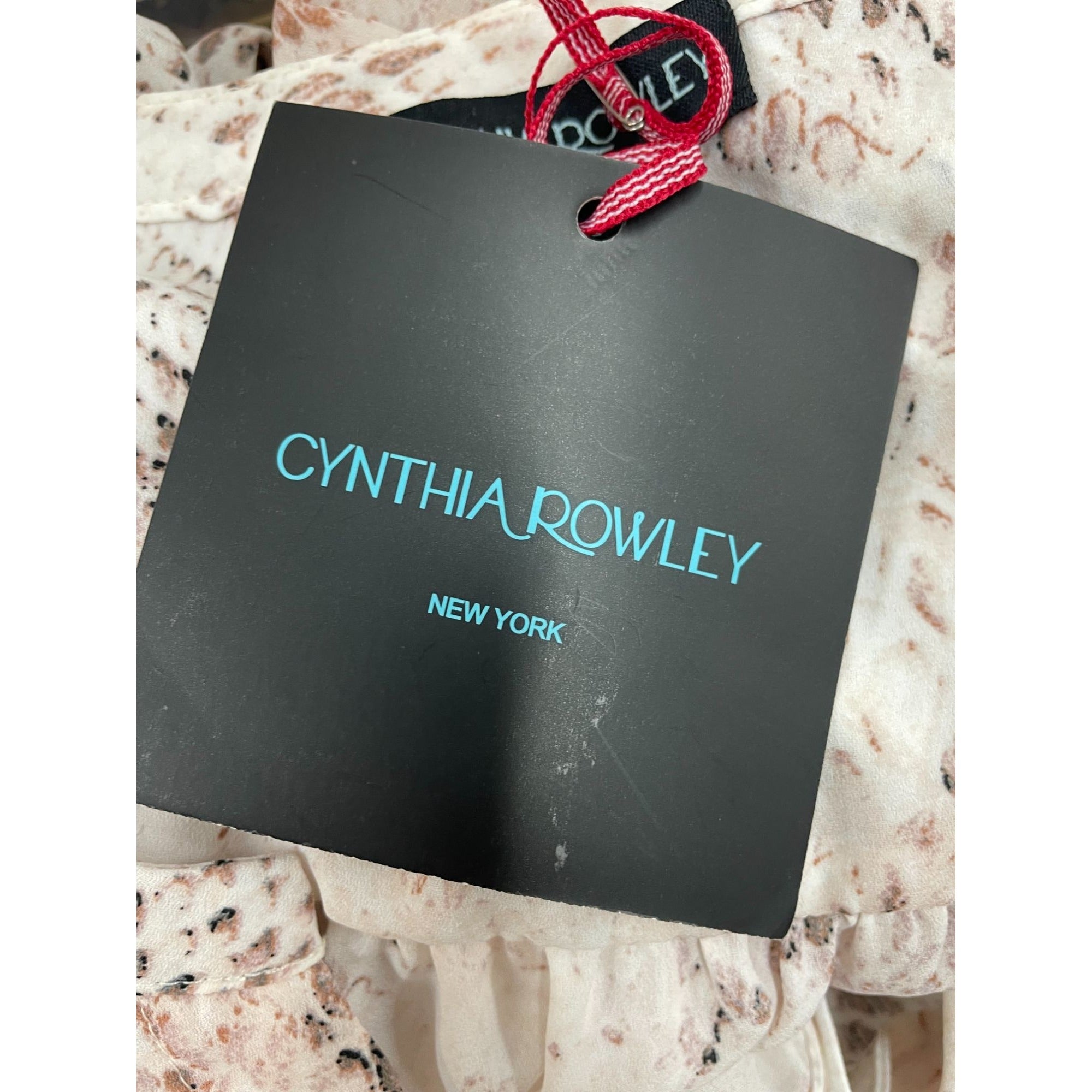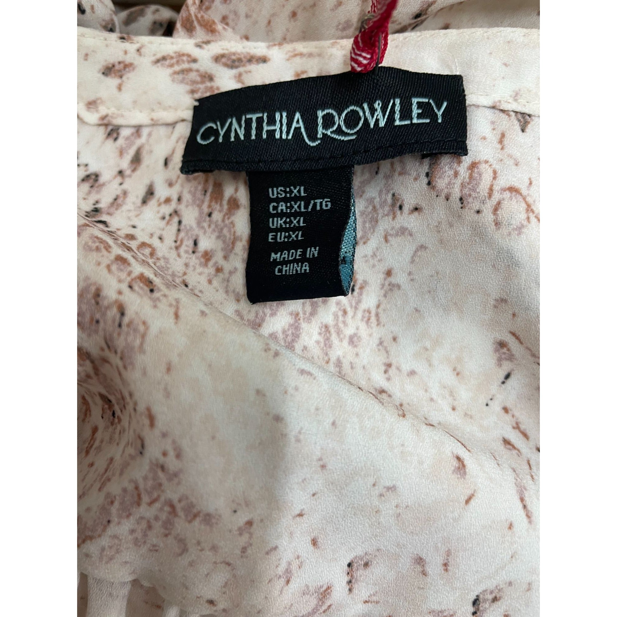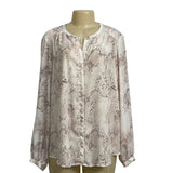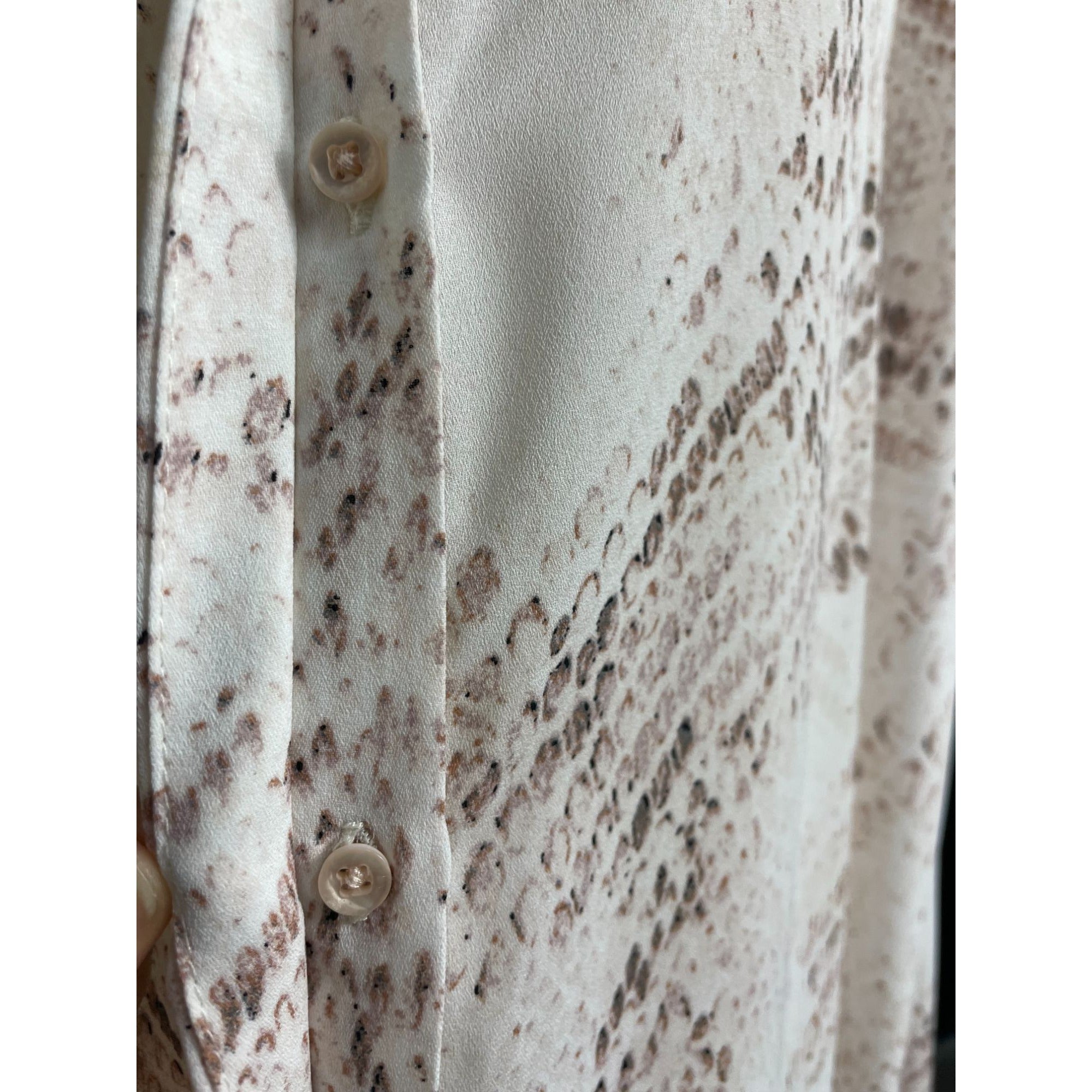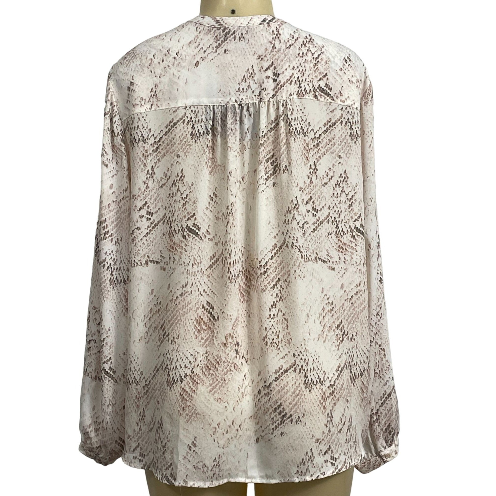 Cynthia Rowley Womens Snake Print Blouse XL Long Sleeve Button-Down Polyester Beige & Brown New