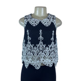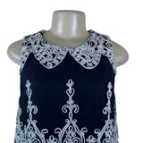 Design Lab Women's Black Embroidered Lace Tank Top Peter Pan Collar Size S