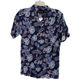 Dirty Laundry Mens Navy Blue Short Sleeve Hawaiian Shirt Tropical Leaf Print Large