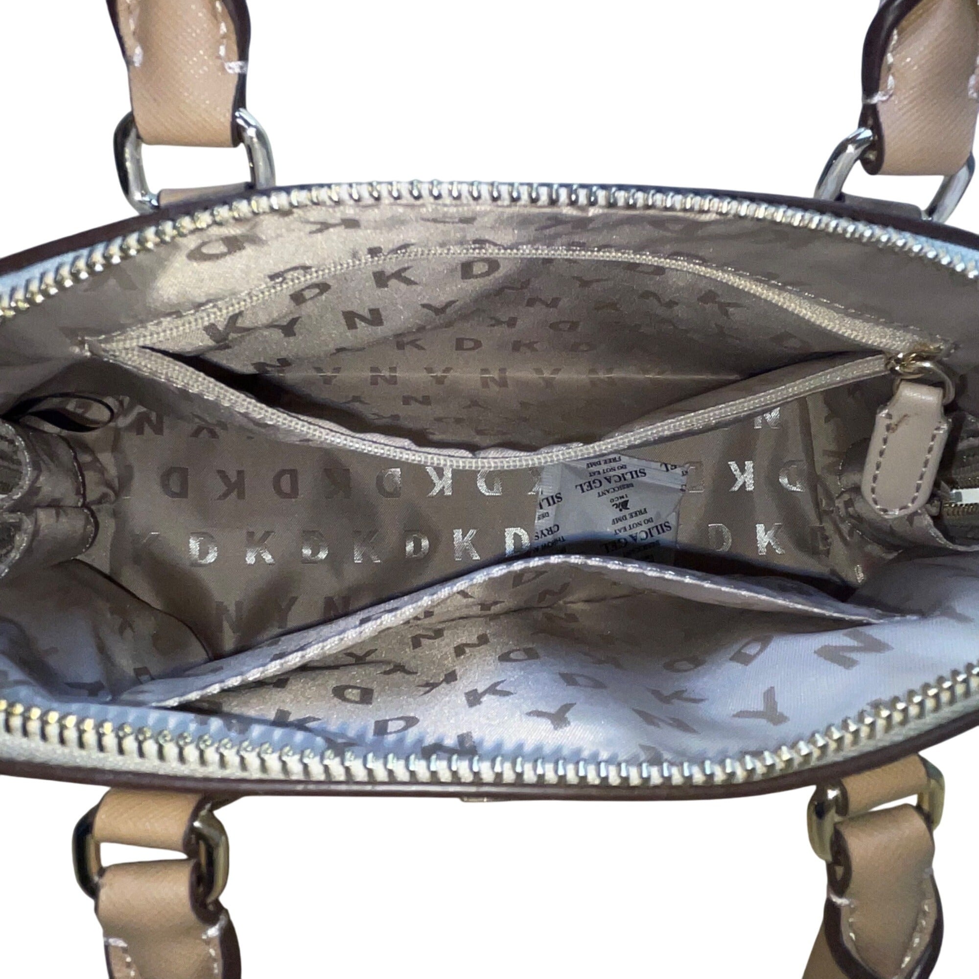 Dkny Women’s Grey Coated Canvas Monogram Dome With Crossbody Strap Clutch Bag
