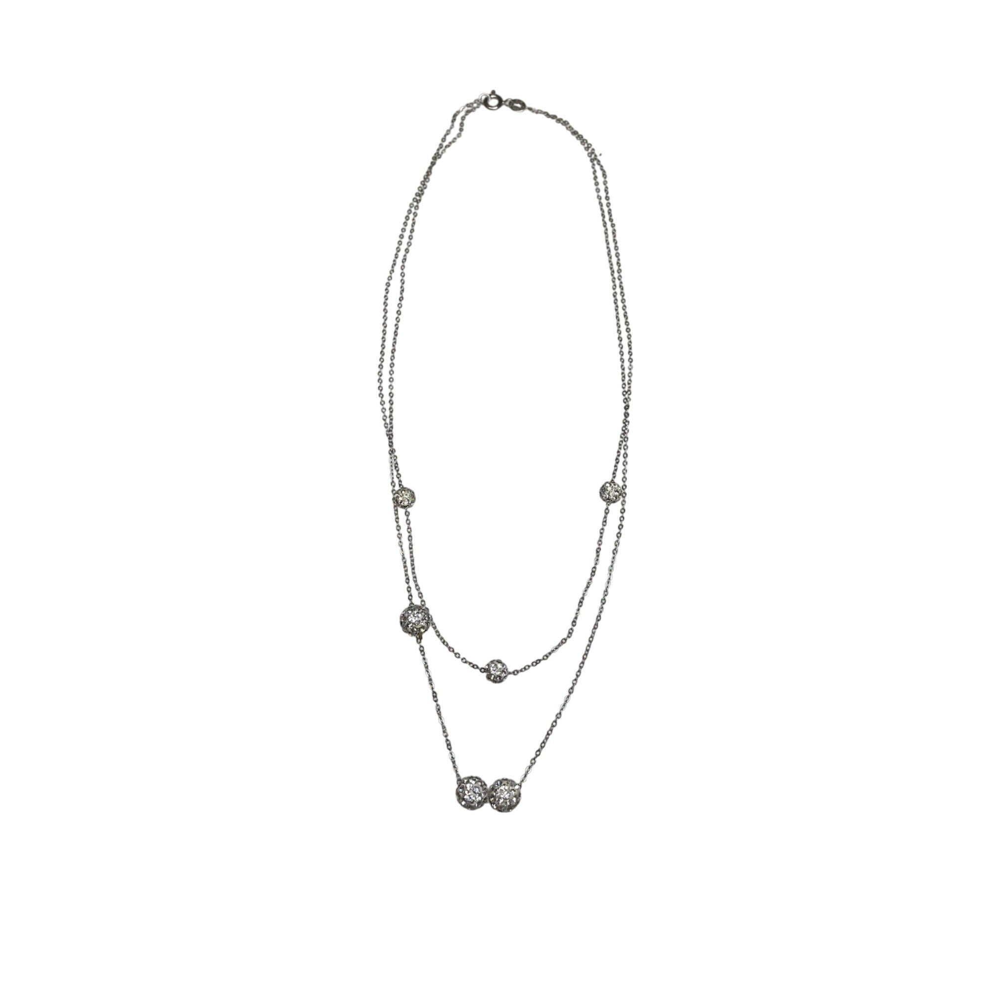 Double Strand Silver Necklace With Pave Bead Accents & Lobster Clasp Thin Elegant Minimalist Design